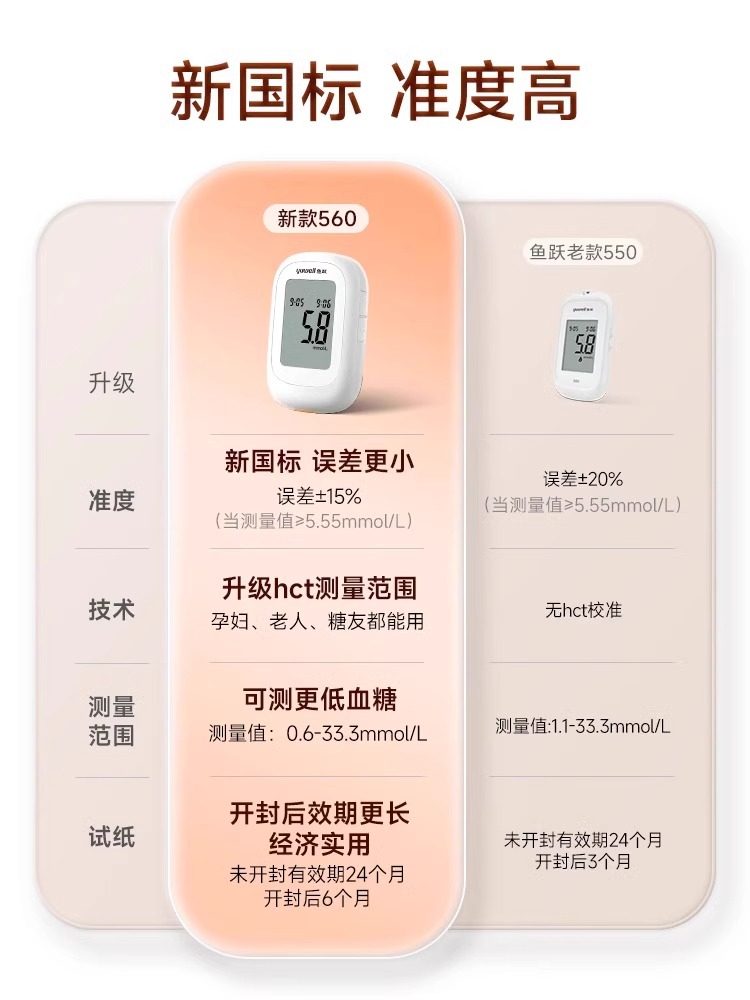 鱼跃血糖测试仪家用医用560试纸官方旗舰店550通用血糖仪自营精准