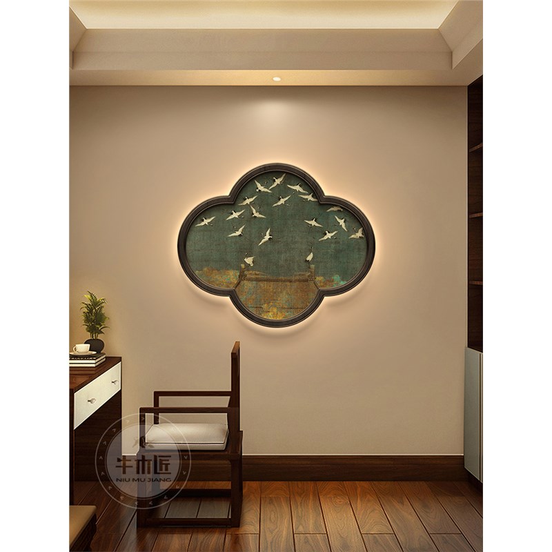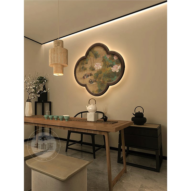 新中式玄关装饰画高级感走廊过道壁灯禅意书房茶室背景.墙挂画布