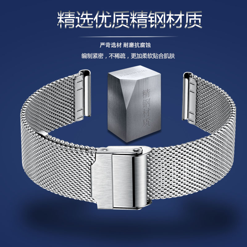 适配天梭1853手表带钢带男女力洛克T41/T006杜鲁尔卡森不锈钢网带