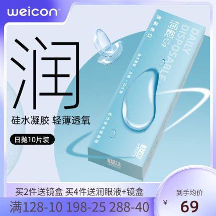 卫康润视O2硅水凝胶透明隐形眼镜日抛10片水润透明片旗舰店