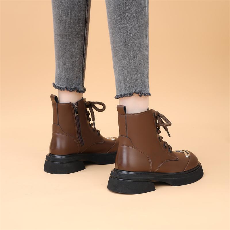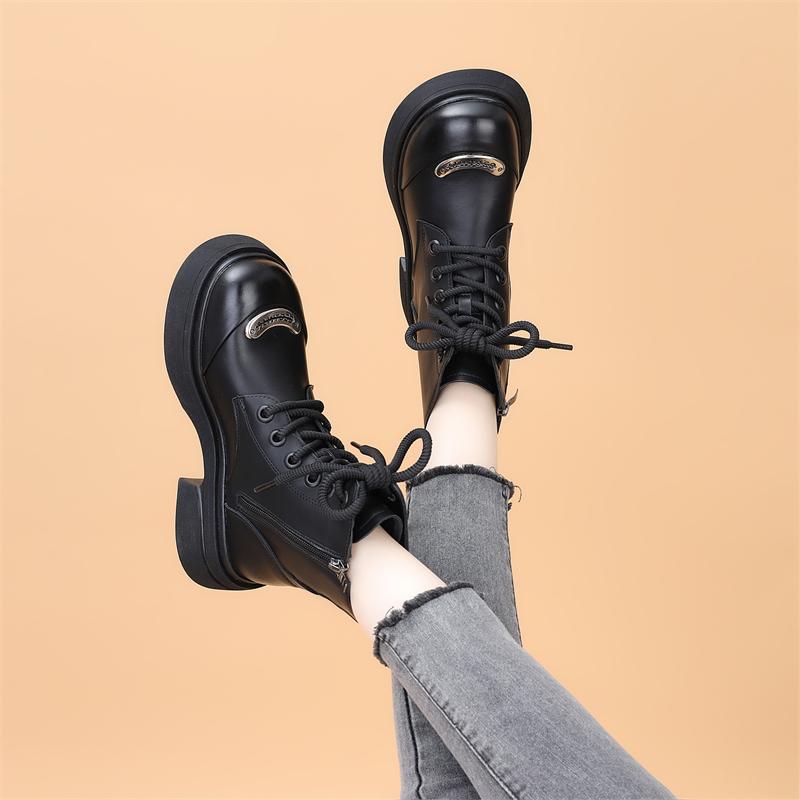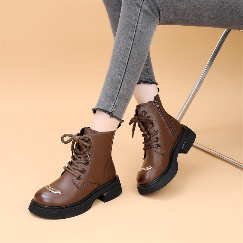 真皮爆款马丁靴女2024新款秋冬时尚英伦加绒单靴百搭厚底短靴棉靴