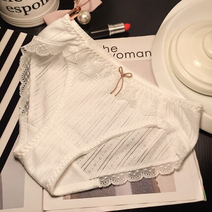 买三送一日系舒适纯棉面料蕾丝边性感中低腰诱惑内裤女呼吸透气棉