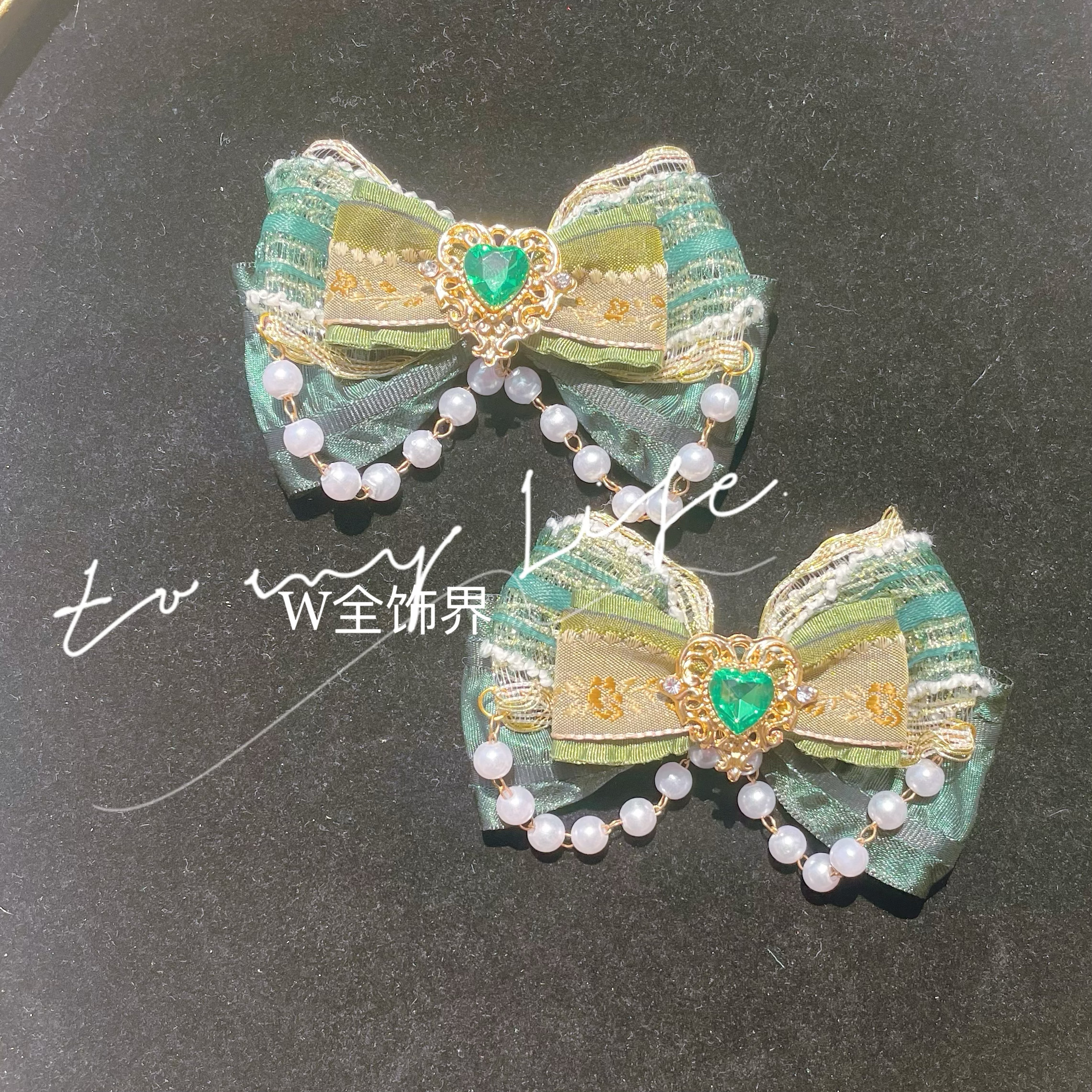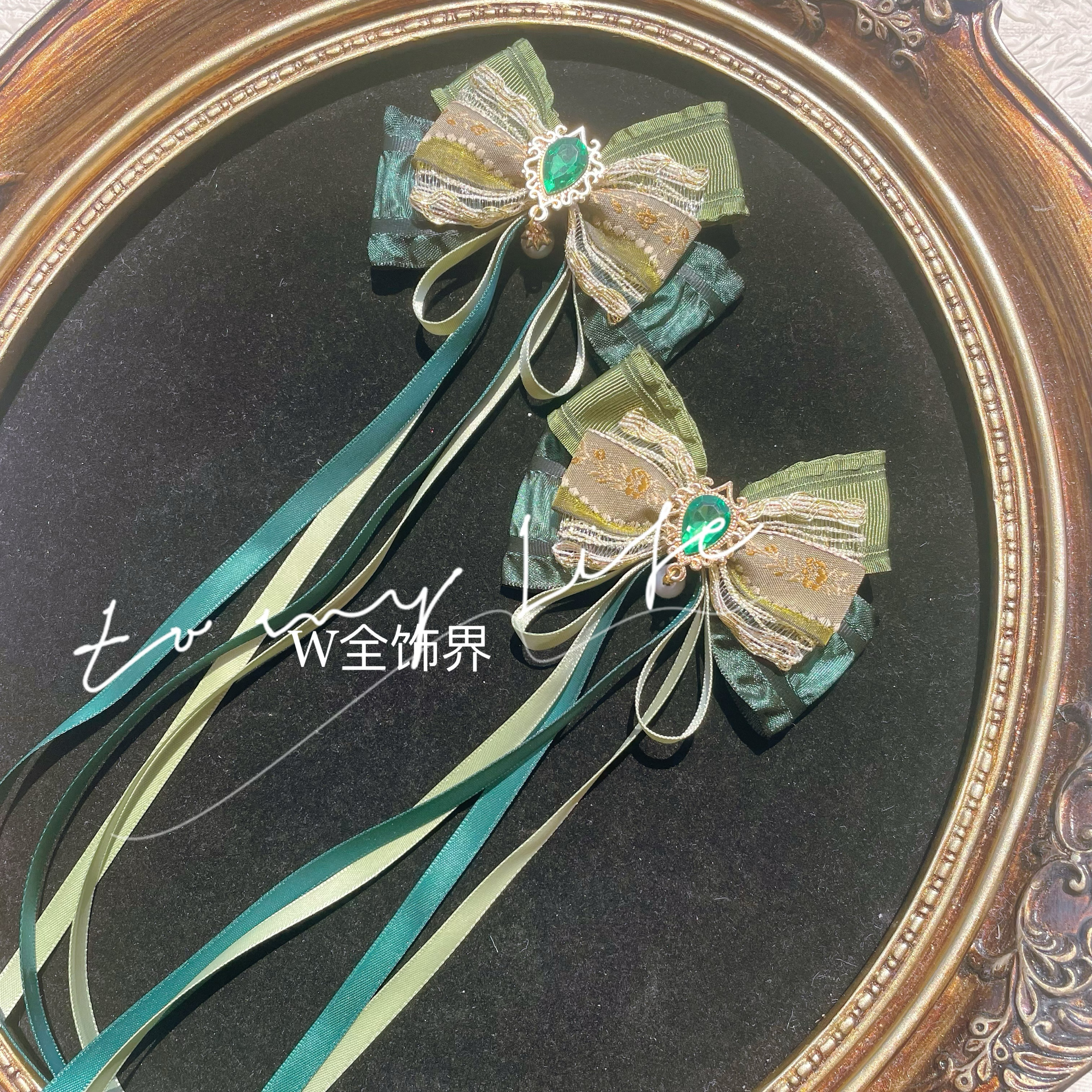 儿童发饰新款安娜公主绿色蝴蝶结发夹洛丽塔配饰六一儿童节礼物