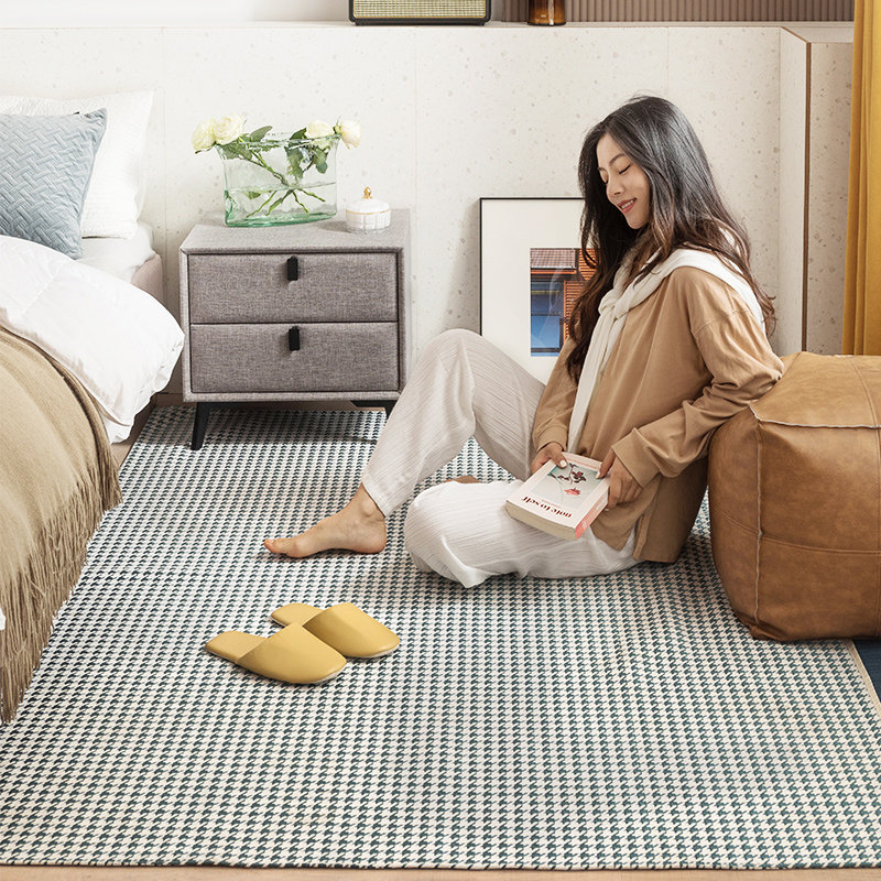 北欧轻奢千鸟格雪尼尔卧室地垫榻榻米床边满铺垫子茶几地毯可定做