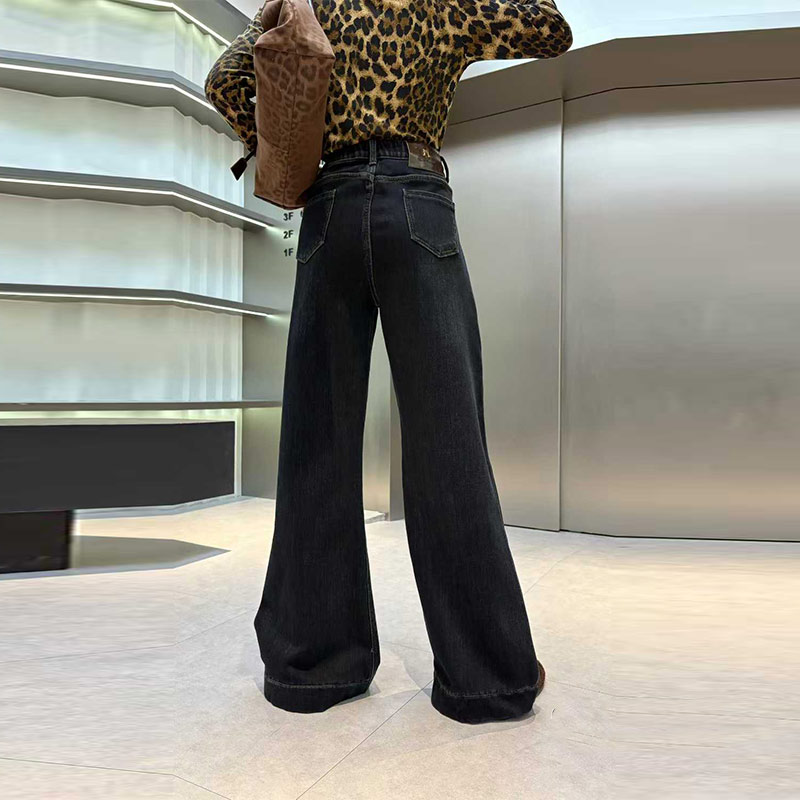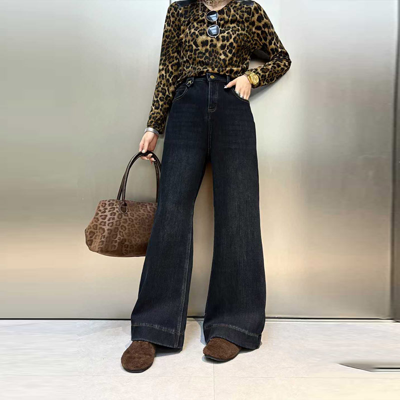 加肥后腰松紧加绒阔腿裤子2025秋冬款欧洲站洋气大码女装牛仔长裤