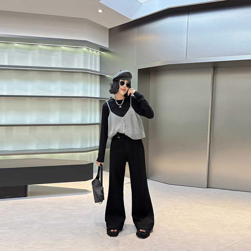 后腰松紧加绒阔腿裤子