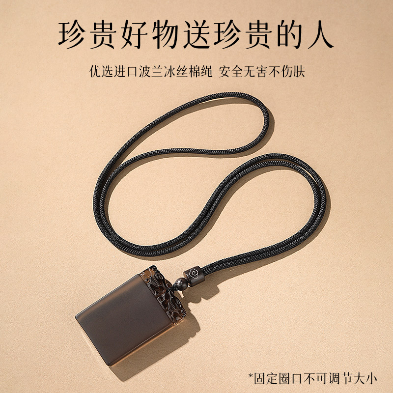天然冰种黑曜石平安无事牌吊坠支持刻字男女款本命年转运护身项链