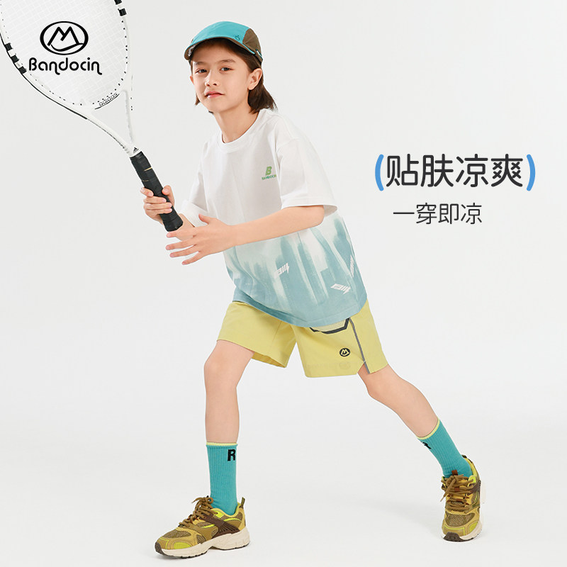 半度闲男童短袖夏装2025新款运动速干t恤夏季中大童轻薄吸汗上衣
