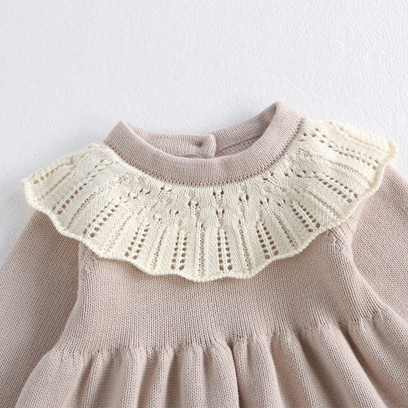 女童连衣裙春秋冬装纯棉针织毛衣裙宝宝蕾丝花边娃娃裙A字公主裙
