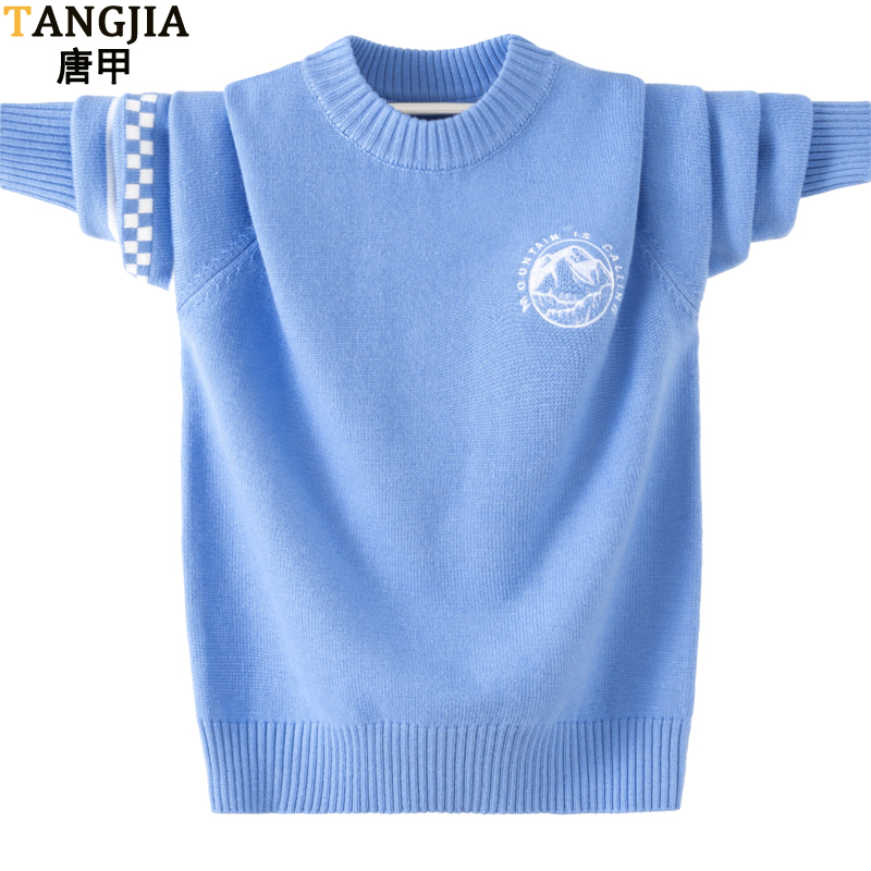 高中生毛衣男厚款圆领 初中生羊毛混纺衫青少年针织衫男生打底衫