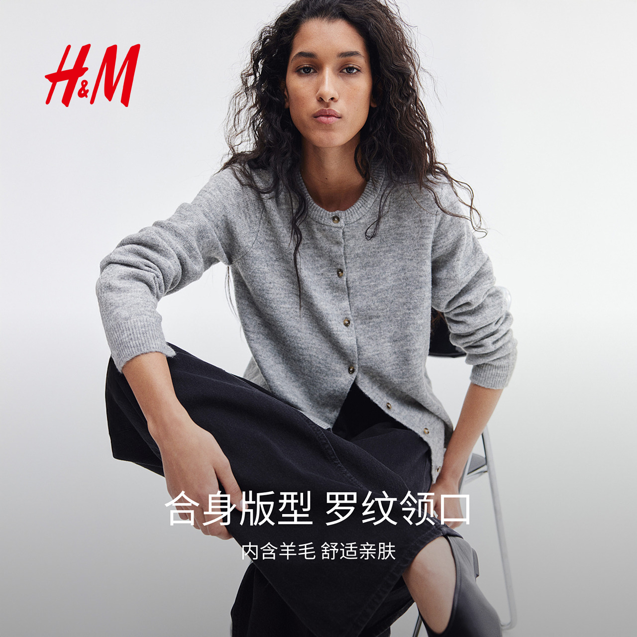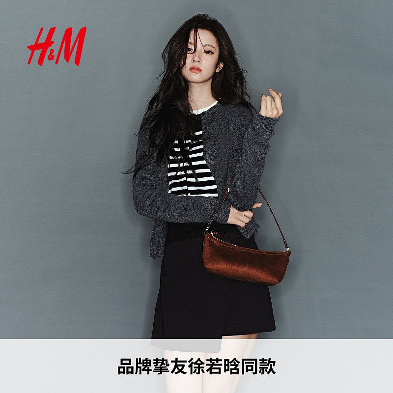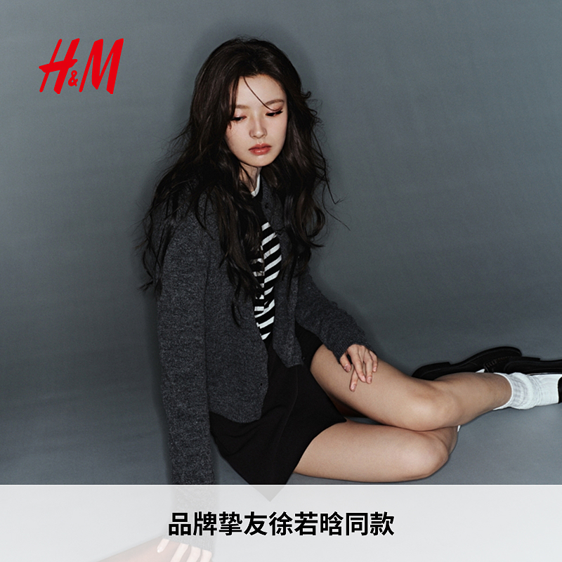 【徐若晗同款】HM女装毛针织衫新款红色打底内搭气质上衣1246581