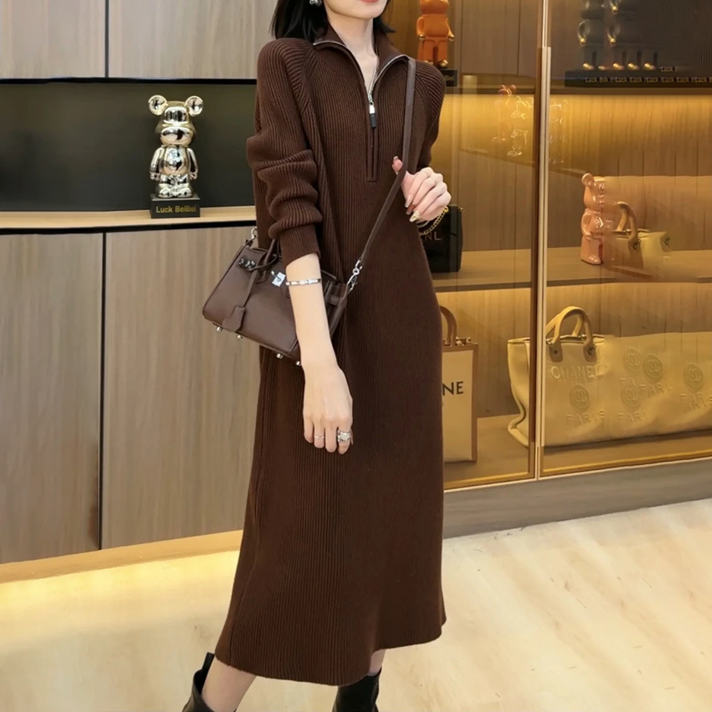 2025秋冬新款高级感时尚百搭加厚针织衫打底外穿毛衣拉链连衣裙