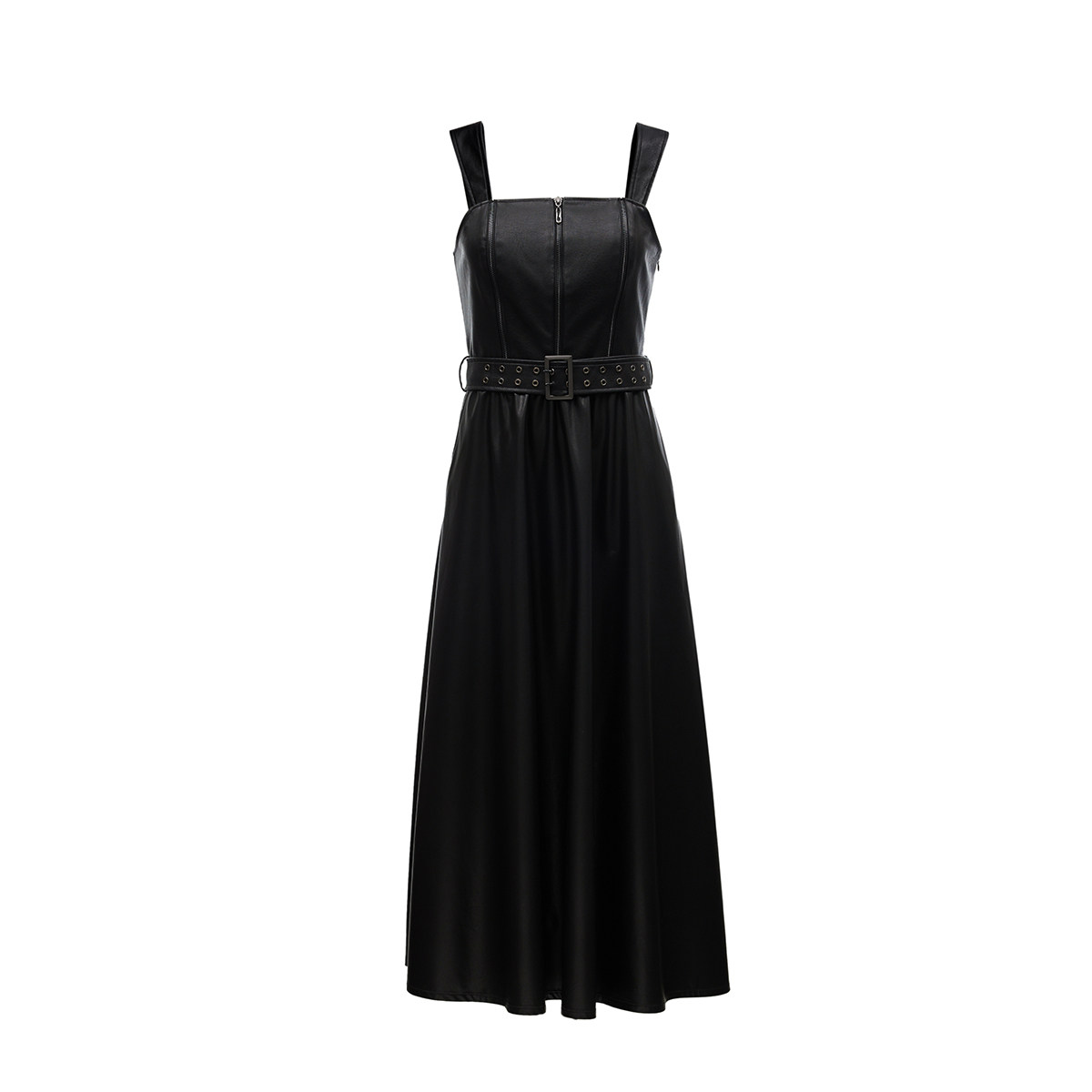 tq区绫致VeroModa连衣裙女秋冬仿皮连衣裙背带裙A版内衬