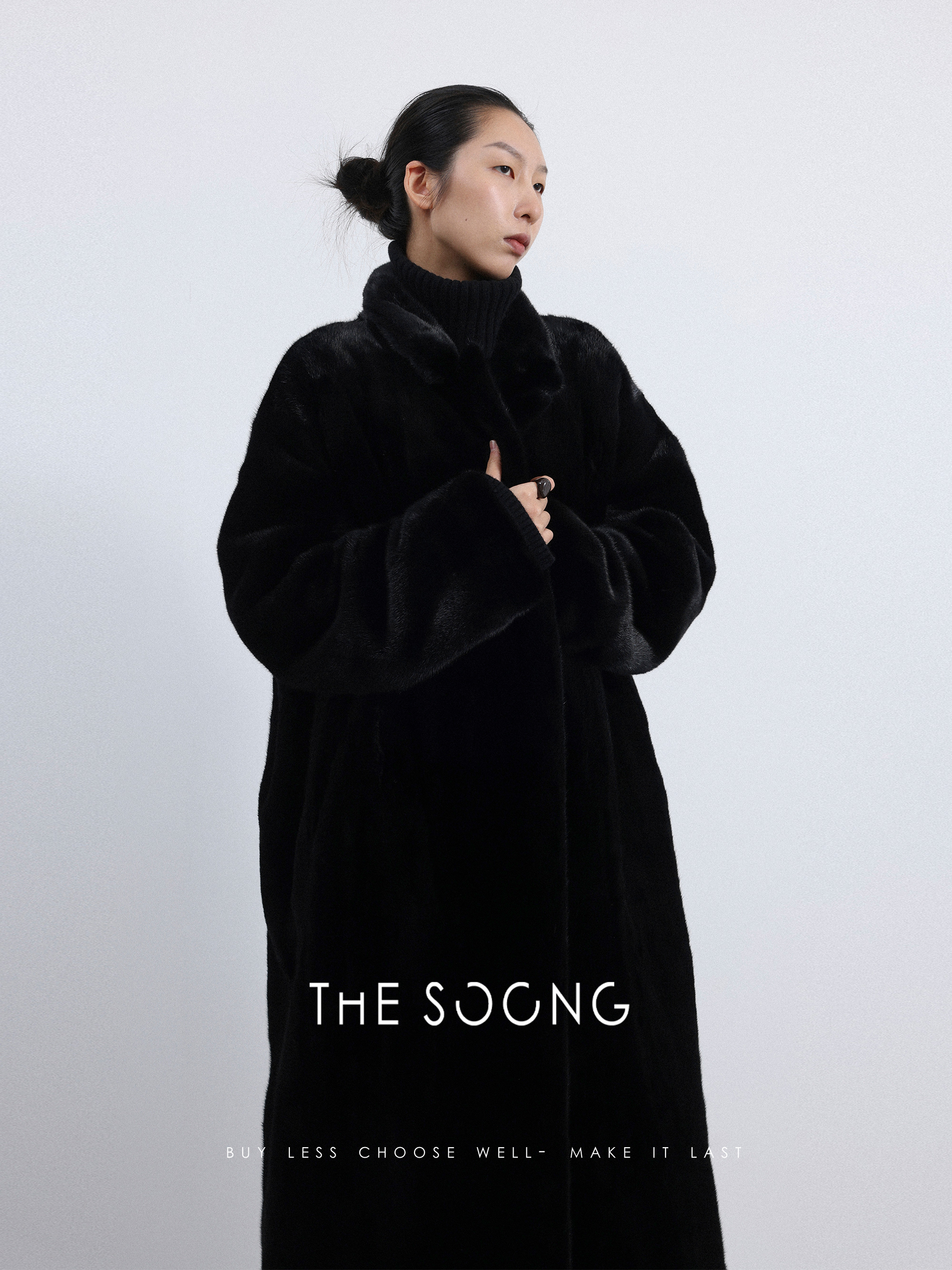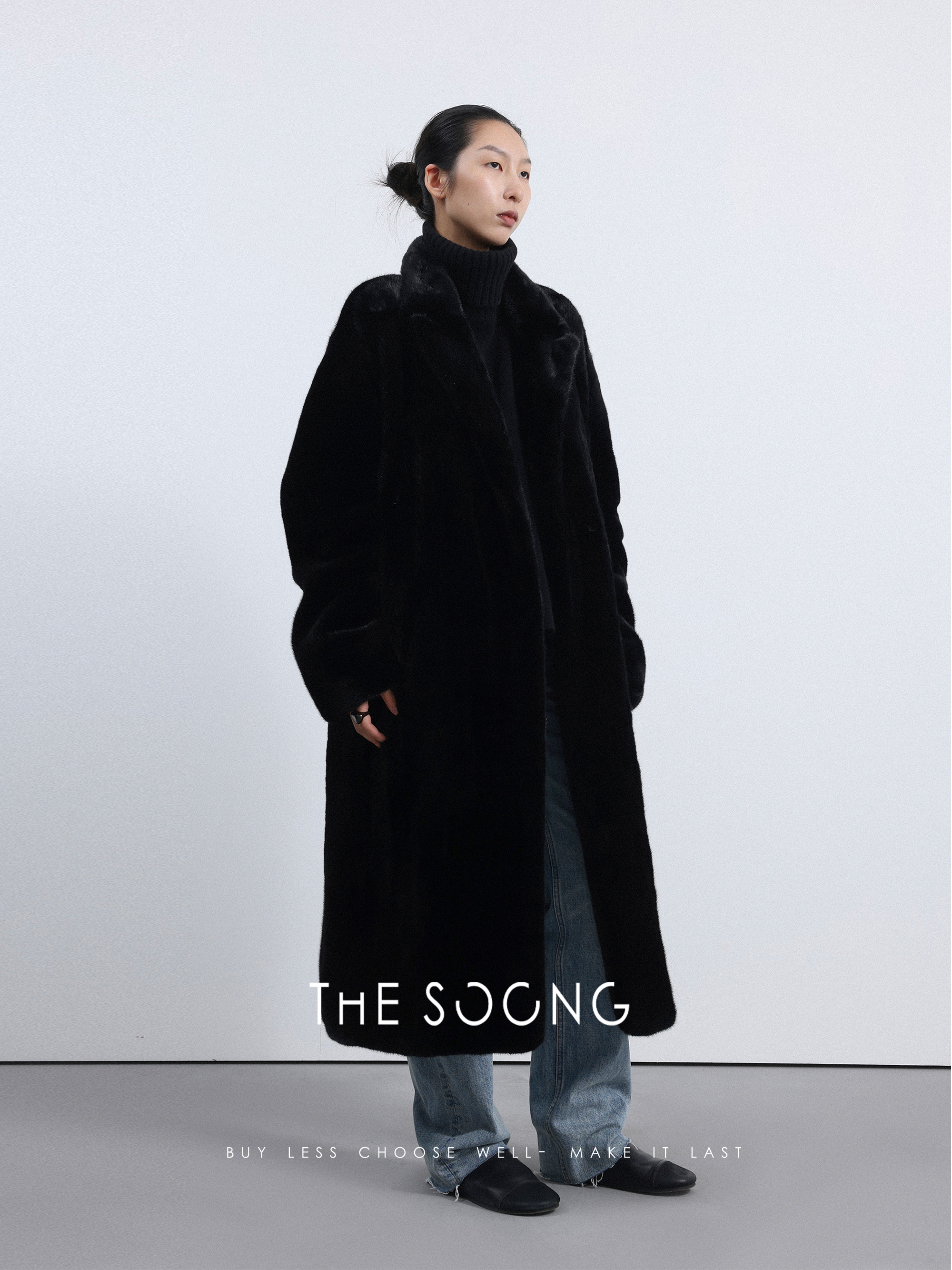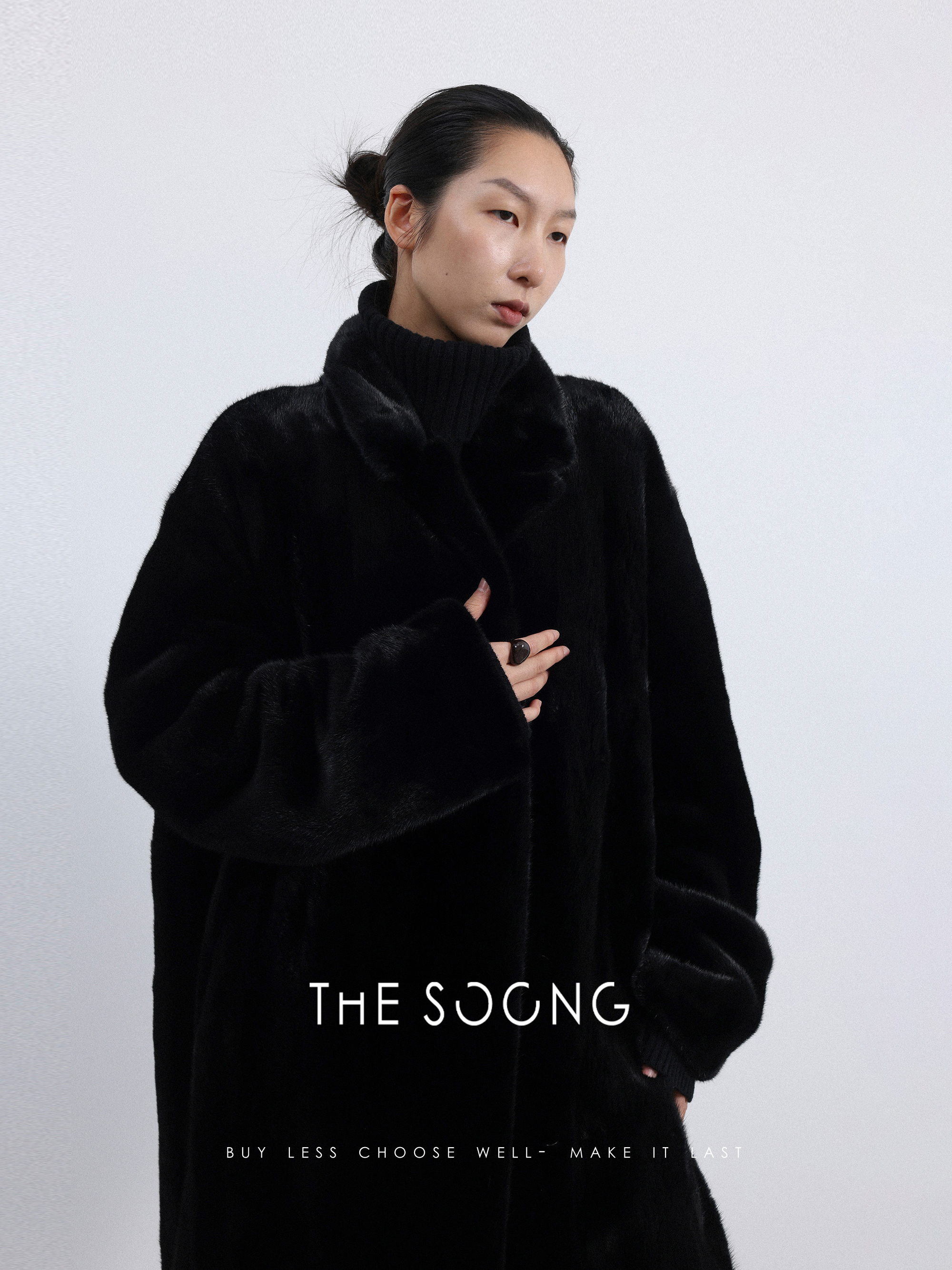 THE SOONG | 丹麦进口短二水貂毛皮革秋冬女士长款皮草外套