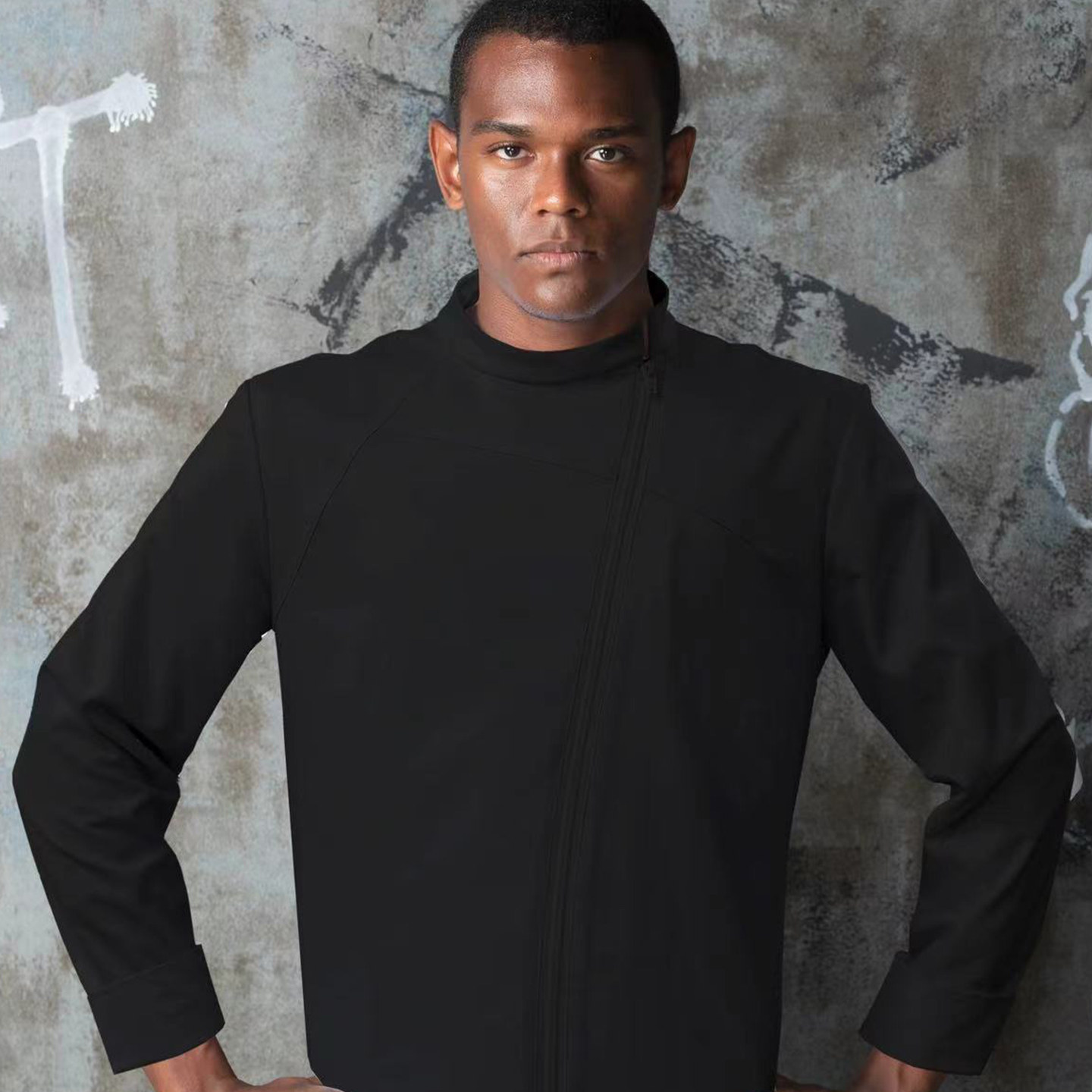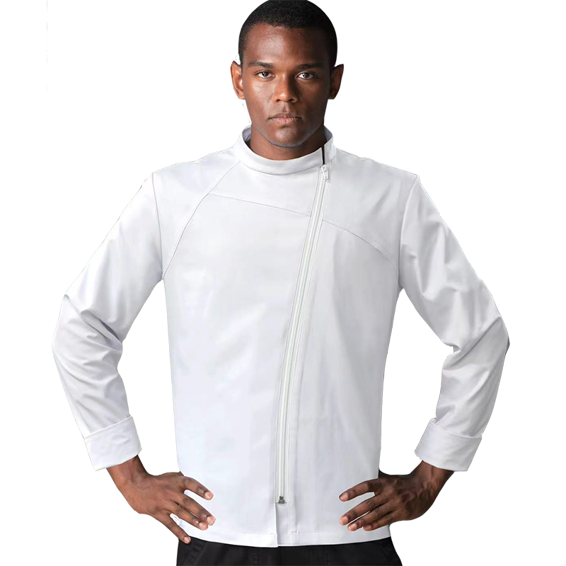 厨师工作服工装制服餐饮店后厨房西餐厅男拉链款厨师服长袖秋冬装