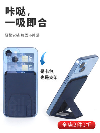 手机磁吸卡包支架 桌面折叠便携创意电话卡套兼容magsafe卡夹支架