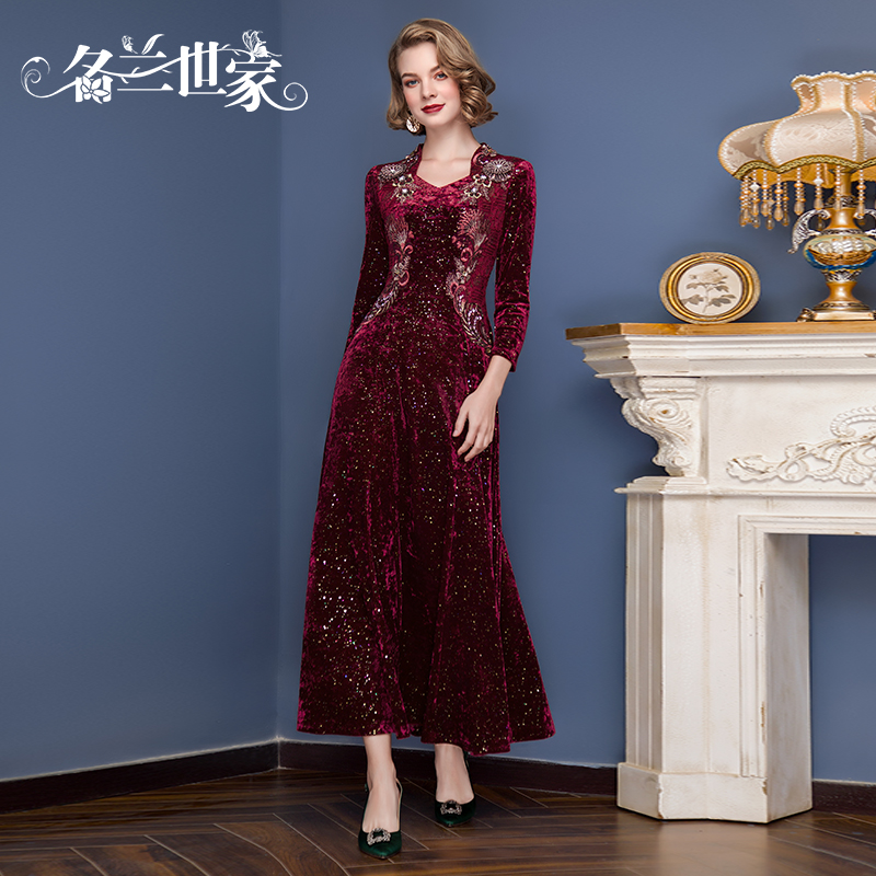 名兰世家喜妈妈高端婚宴礼服婆婆婚礼装女丝绒连衣裙原创日常可穿