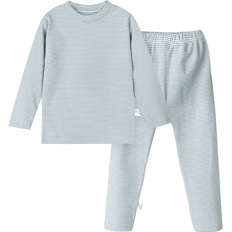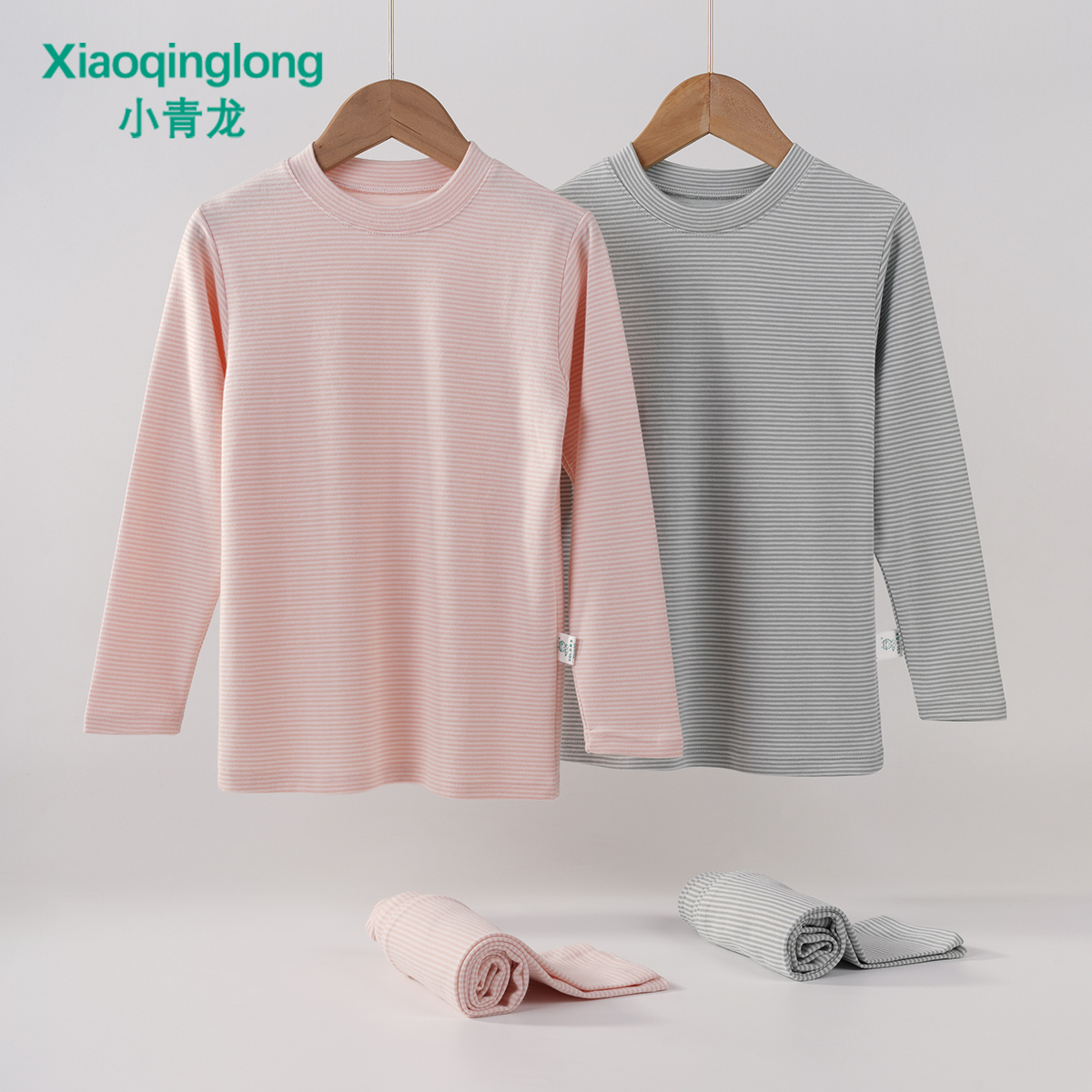 小青龙儿童小圆领薄款条纹莱卡秋衣秋裤套装男女童学生中大童内衣