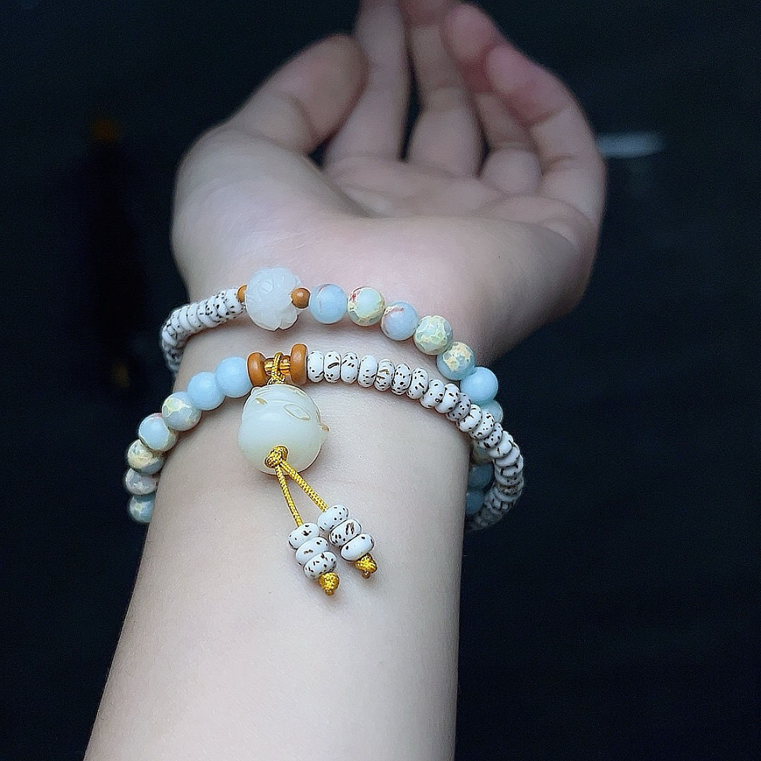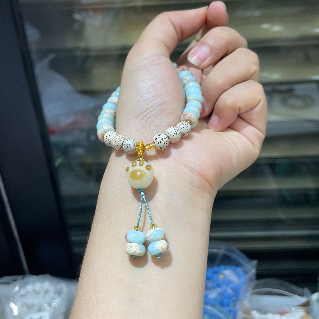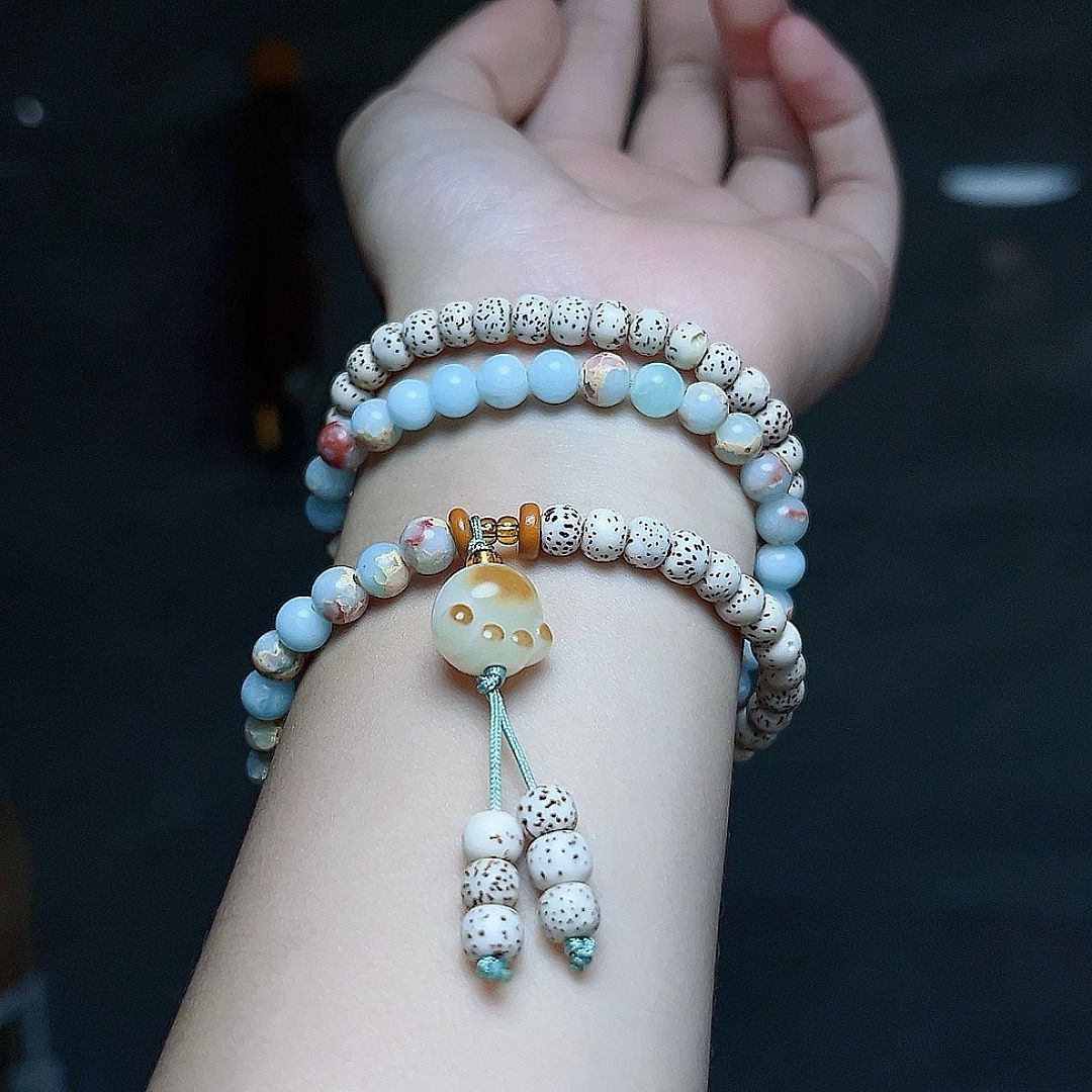 日本品质原生态星月菩提猫爪佛珠手串单圈寿山石双拼手链炭烧猫爪