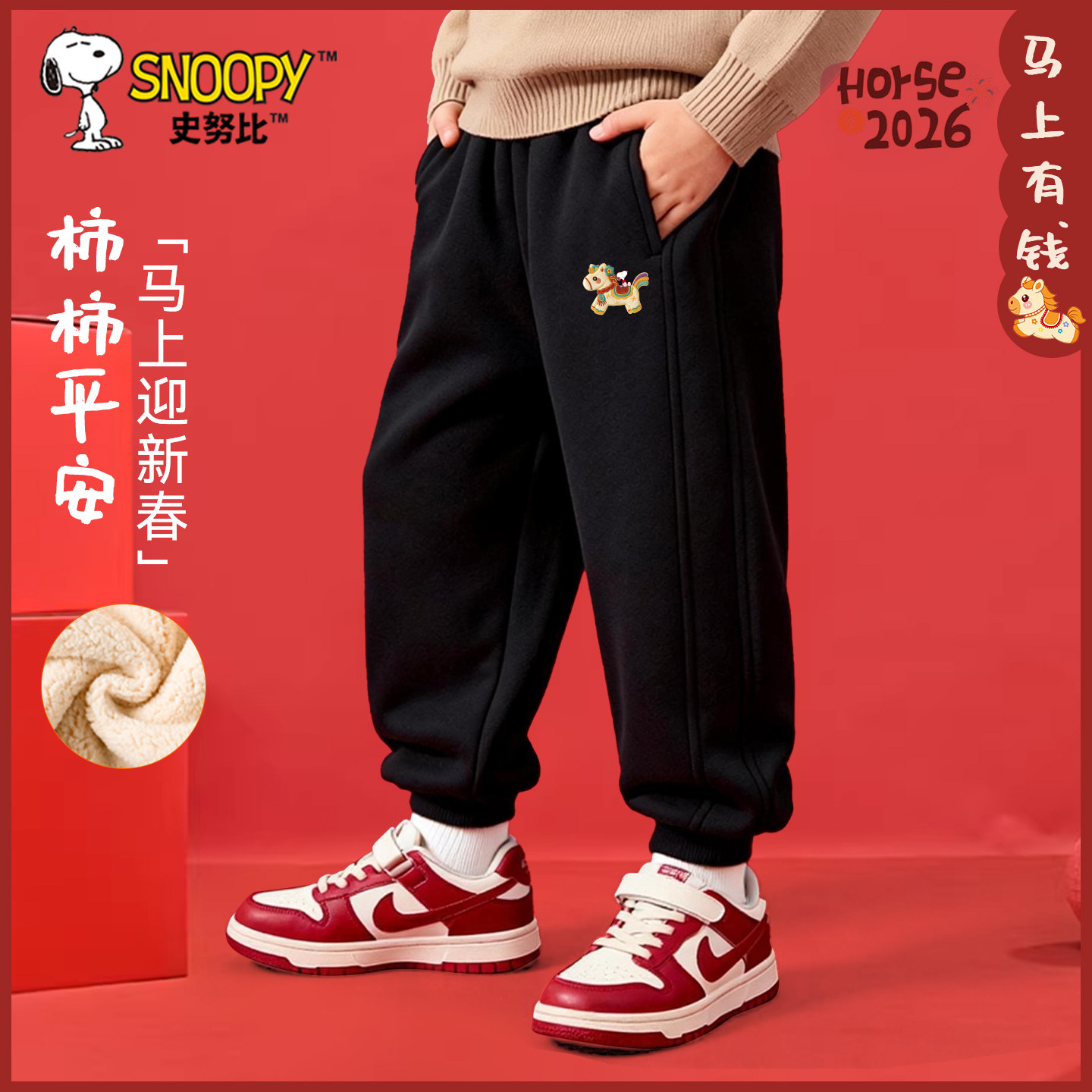 史努比童装男童冬季加绒裤子大童一条过冬棉裤儿童运动裤男孩卫裤