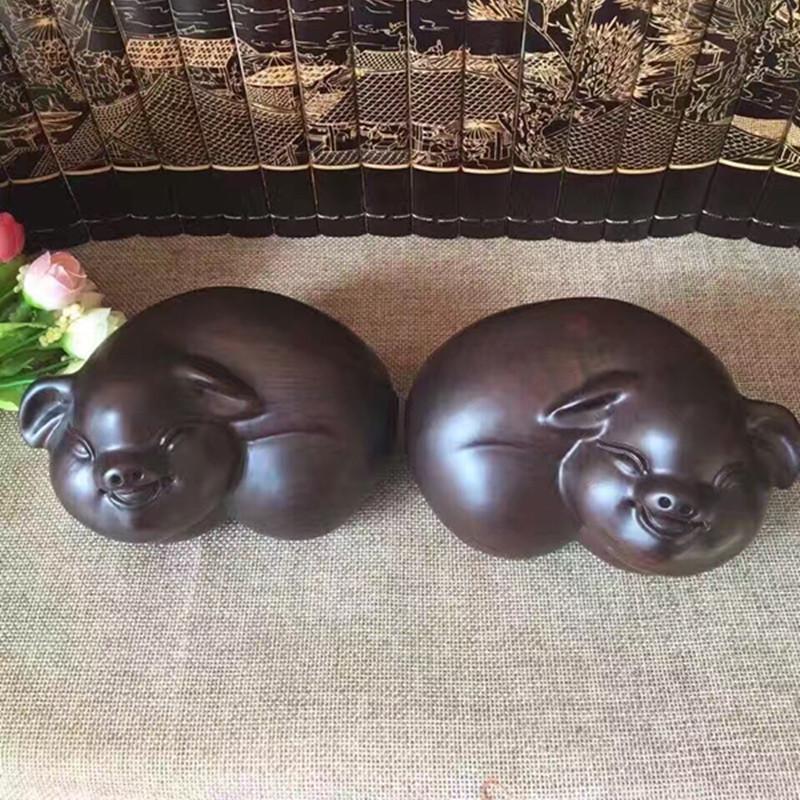 木雕木质黑檀对猪摆件十二生肖福猪工艺品工艺品