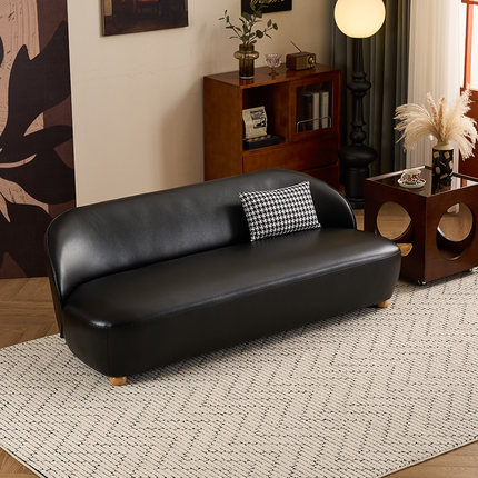 黑色百搭小户型皮艺沙发简约现代服装店接待休闲区网红直排沙发