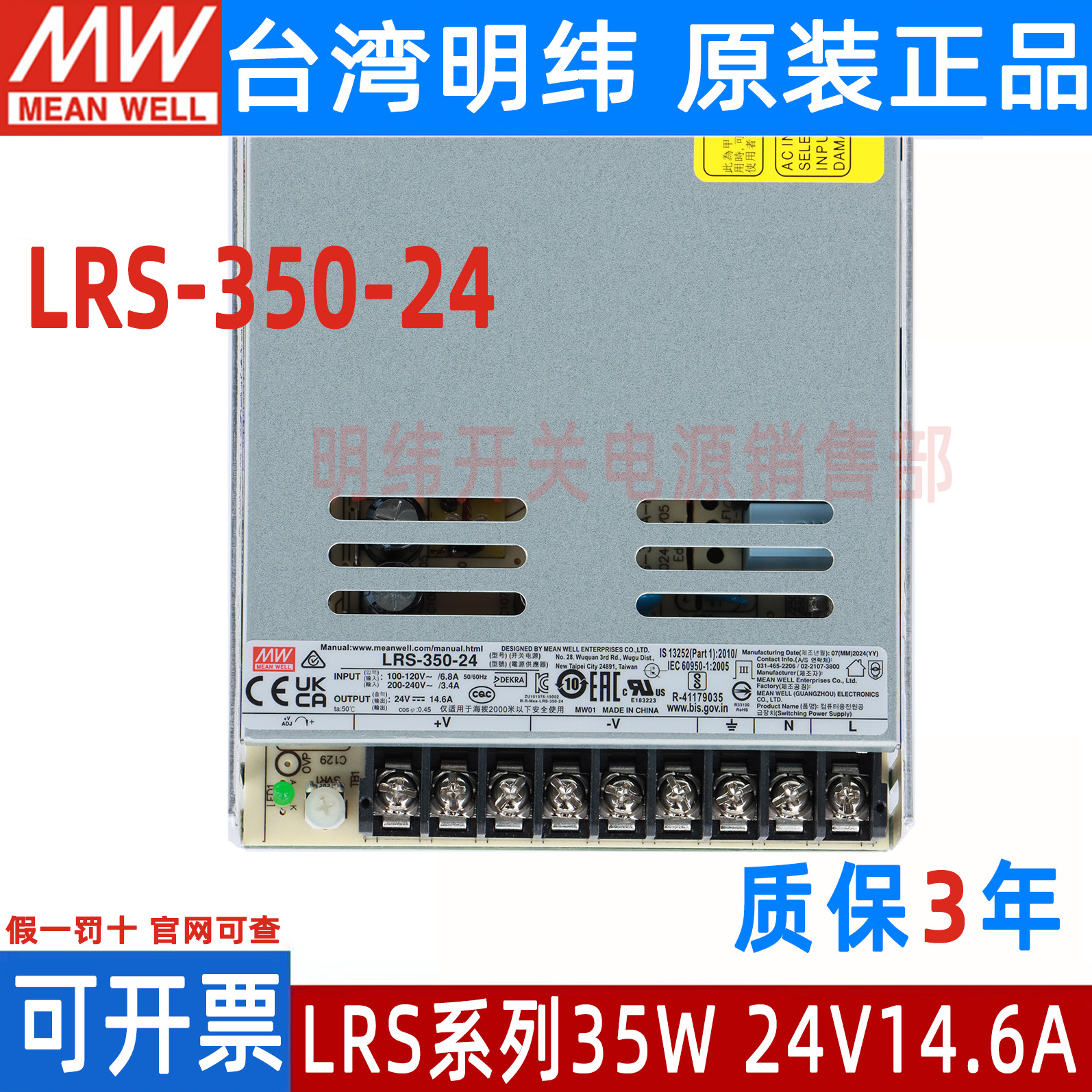 LRS-350-24台湾明纬350W220V转5V12V36V48V超薄LED开关电源直流15