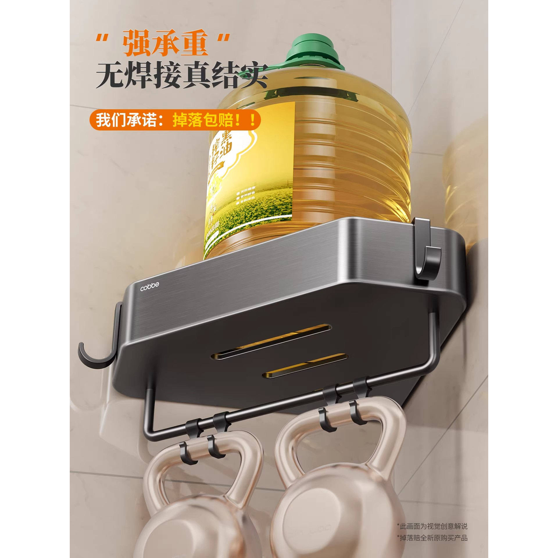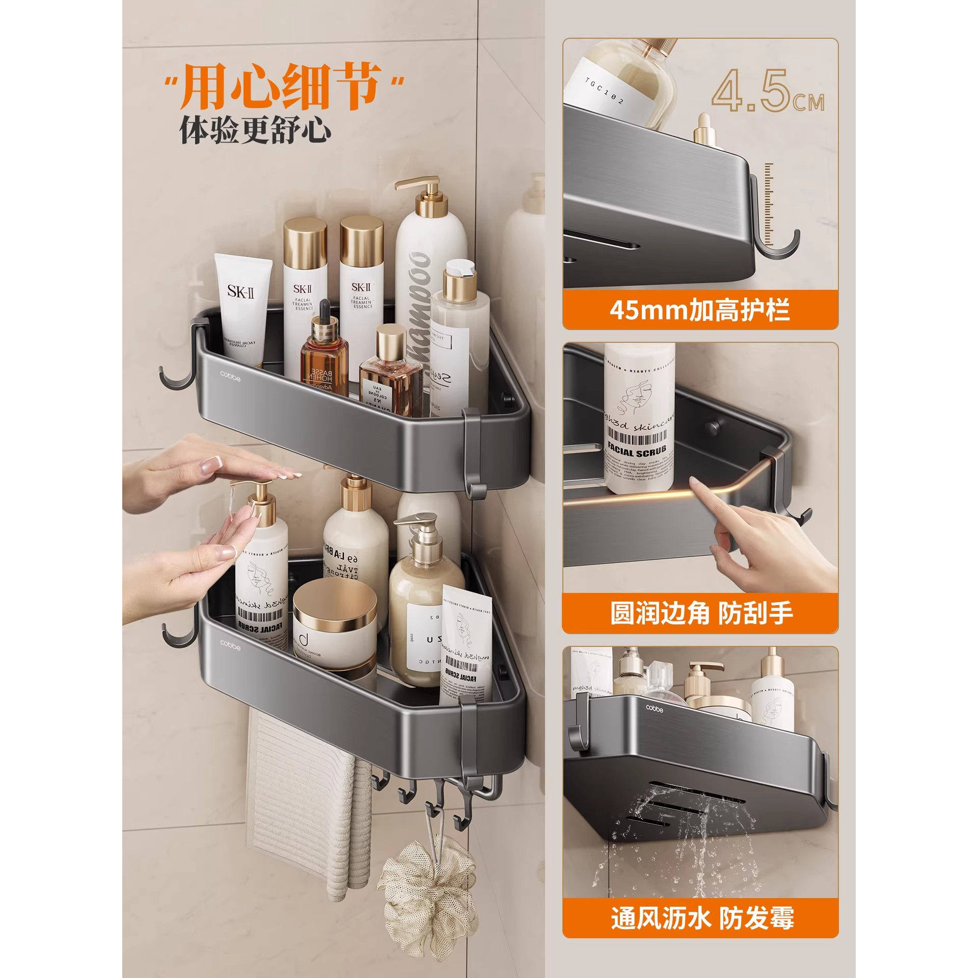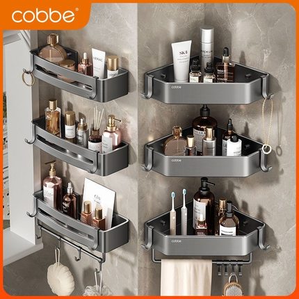 卡贝枪灰色加高卫生间置物架浴室收纳免打孔三角篮厕所墙上壁挂式