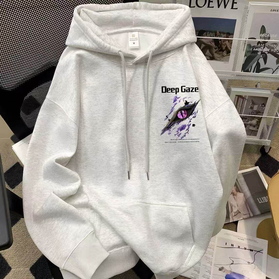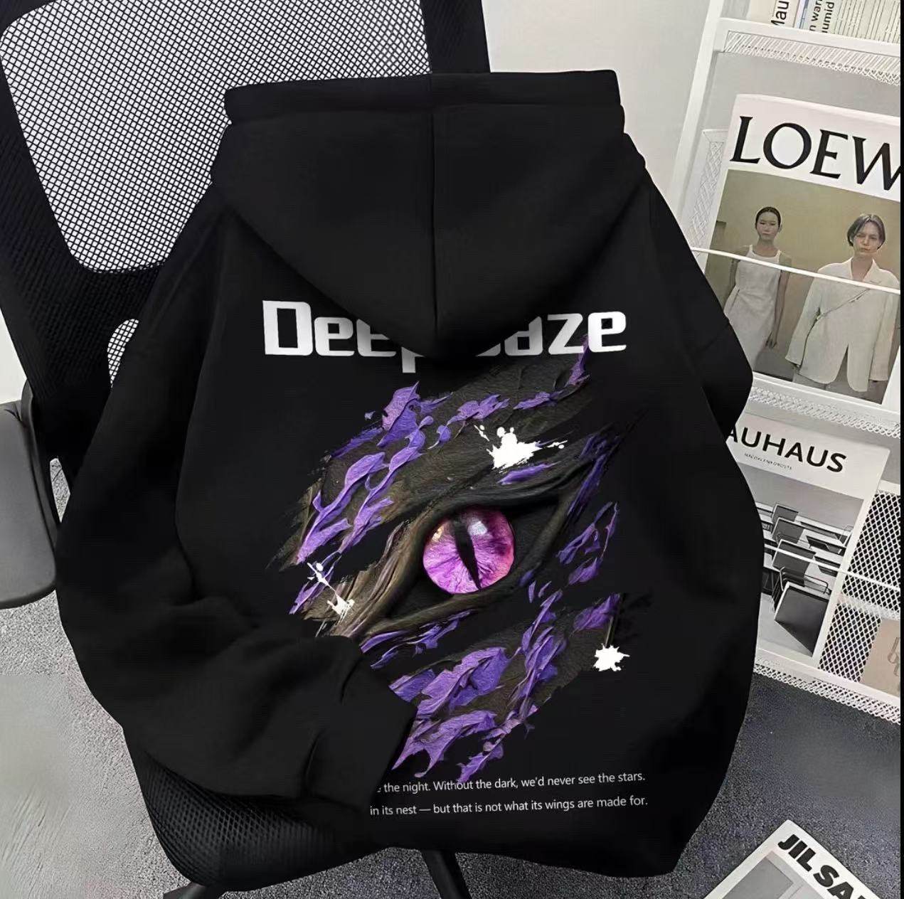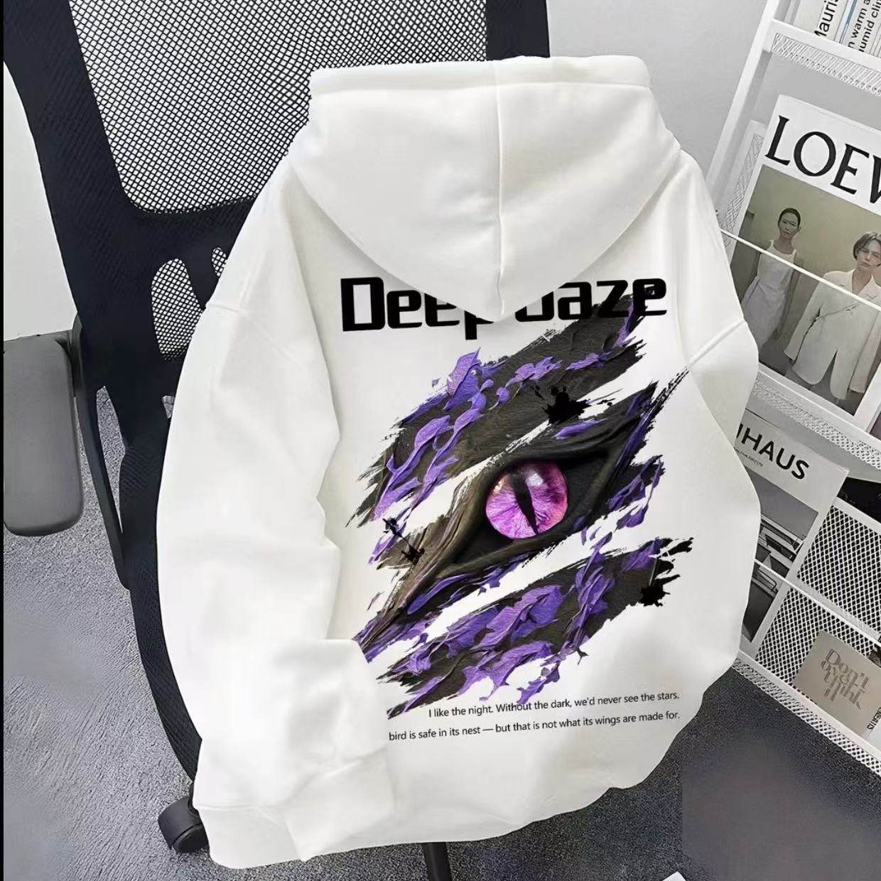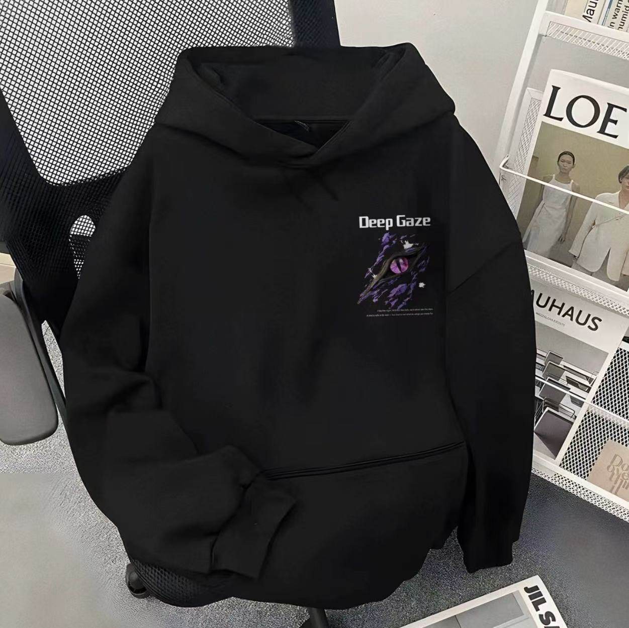 男女童秋冬美式恶魔眼睛印花连帽卫衣中大儿童学生酷帅外套上衣服