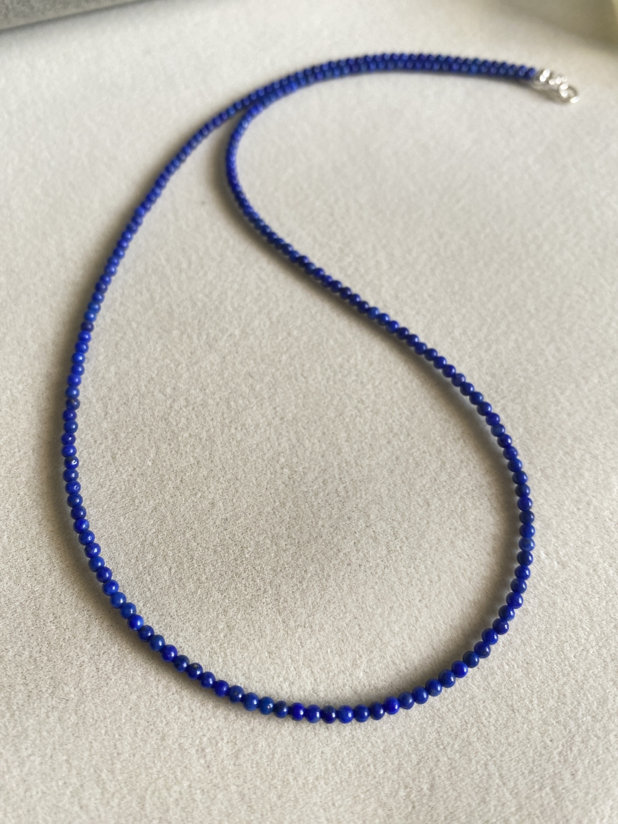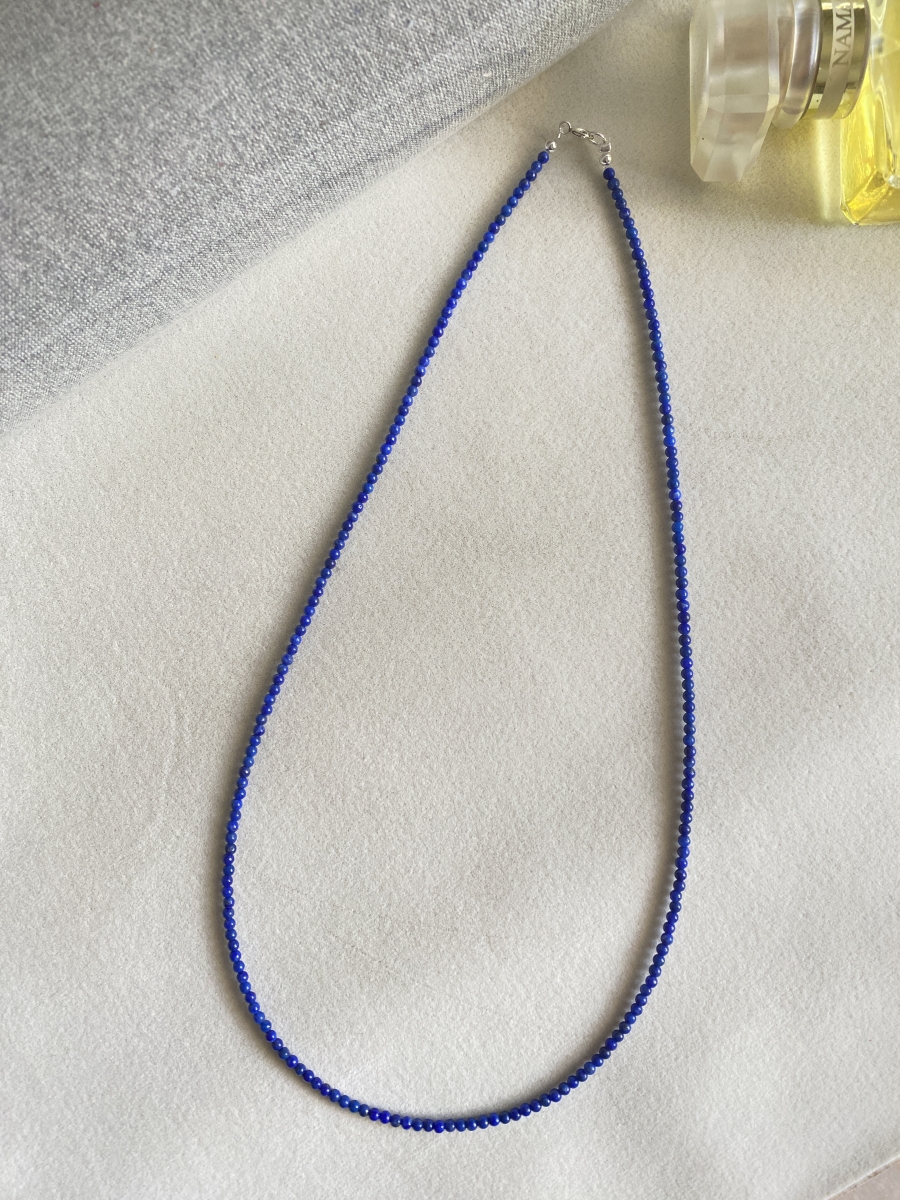 2+mm天然青金石小米珠项链极细简约风百搭锁骨链925银扣女颈饰品