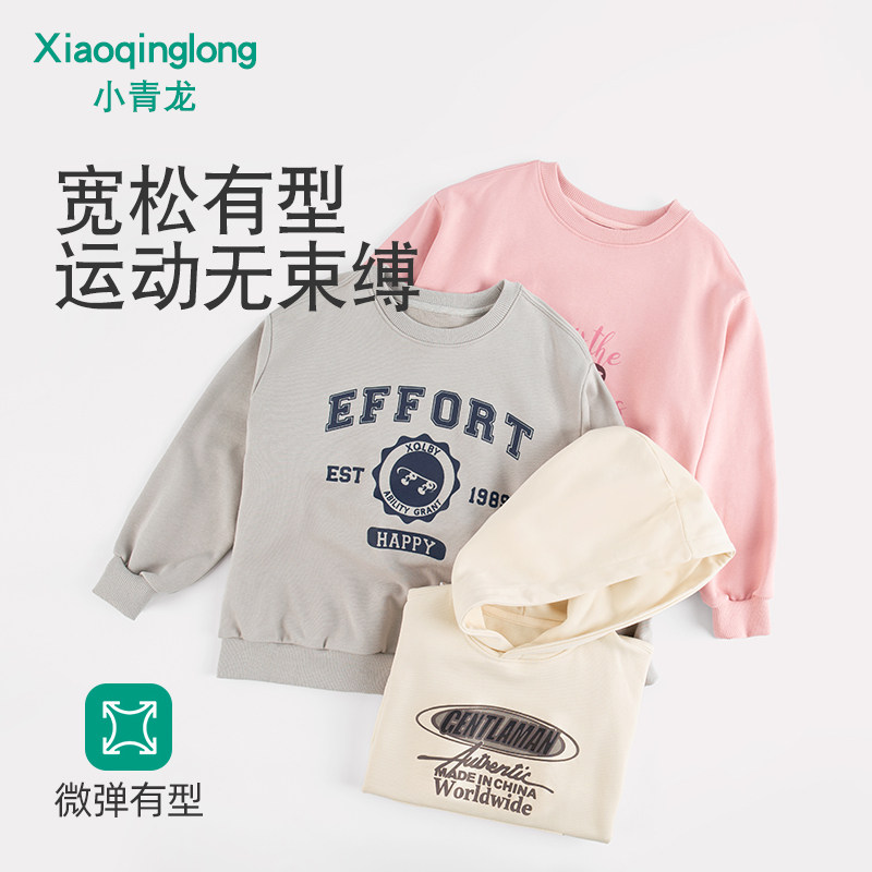 小青龙春秋新款毛圈卫衣男童女童长袖套头衫亲肤透气儿童休闲上衣
