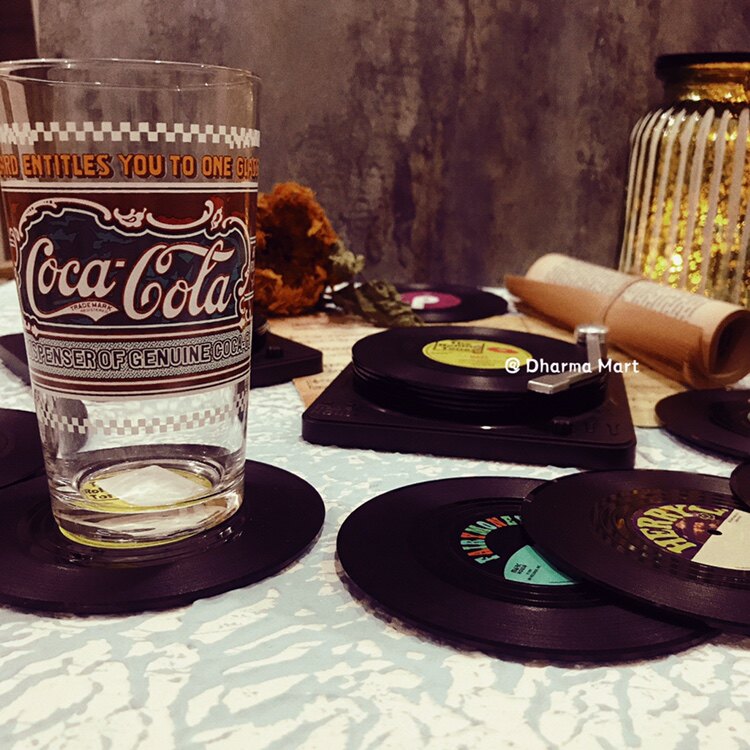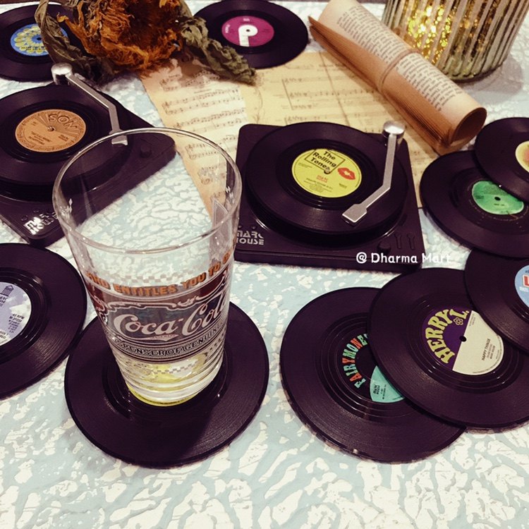 复古黑胶唱片杯垫摇滚CD唱片机酒杯垫咖啡垫隔热防滑Rock Coaster