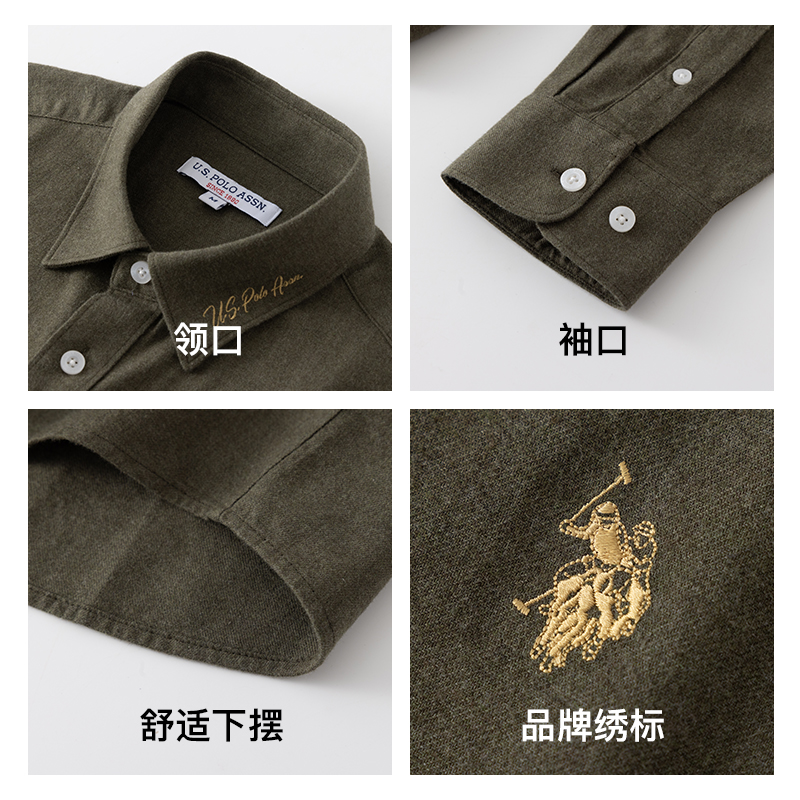 【商场同款】USPA男士衬衫磨毛长袖舒适衬衣美式休闲保罗纯色上衣