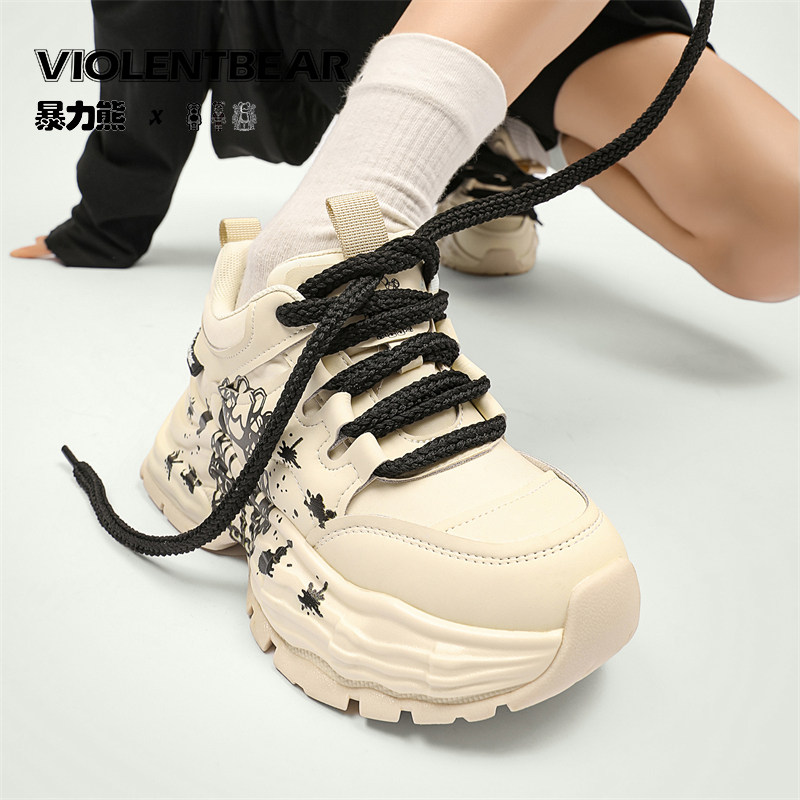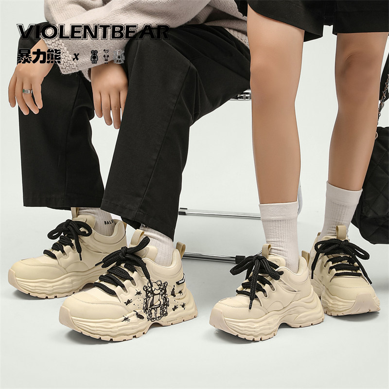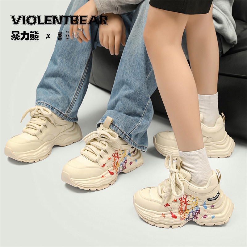 暴力熊男鞋老爹鞋2026春季新款涂鸦厚底运动鞋时尚百搭休闲鞋情侣