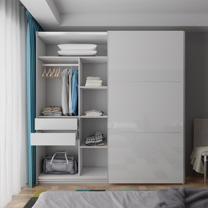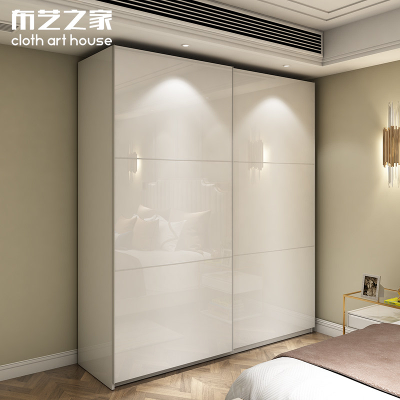 烤漆移门衣柜简约现代白色推拉门整体大衣橱实木S卧室家具全屋定