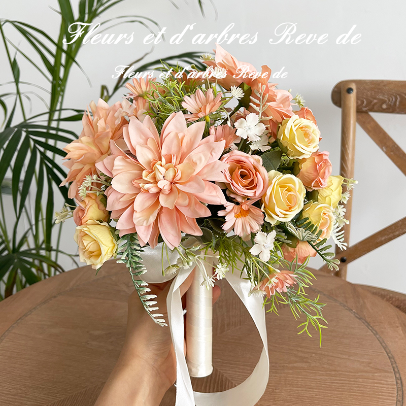 法式高档玫瑰绣球洋甘菊仿真花假花新娘订婚宴领证结婚婚礼手捧花