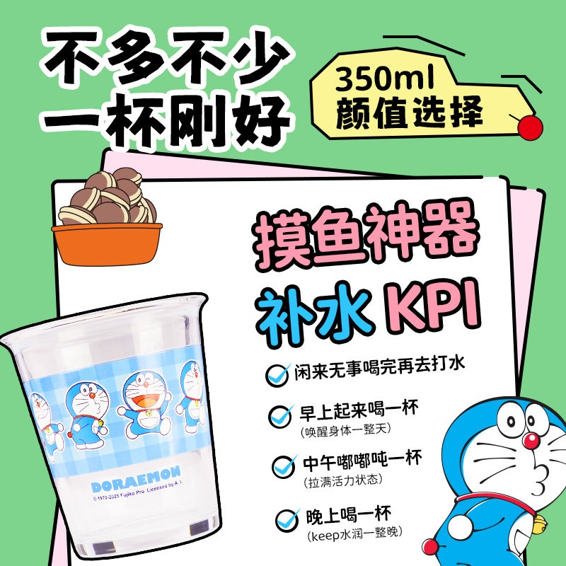 KKV哆啦A梦系列玻璃杯卡通周边家用牛奶咖啡学生办公室喝水杯子