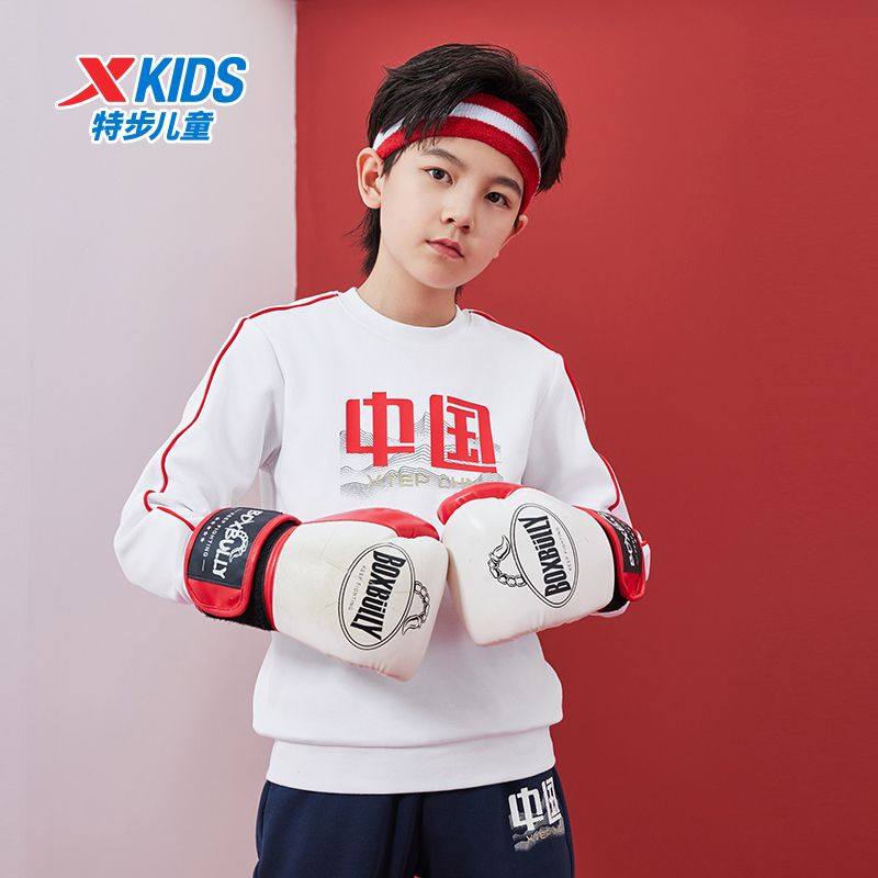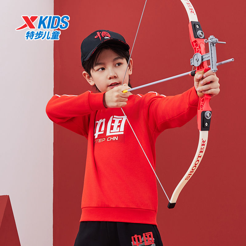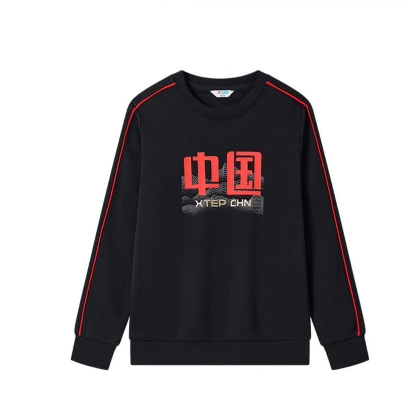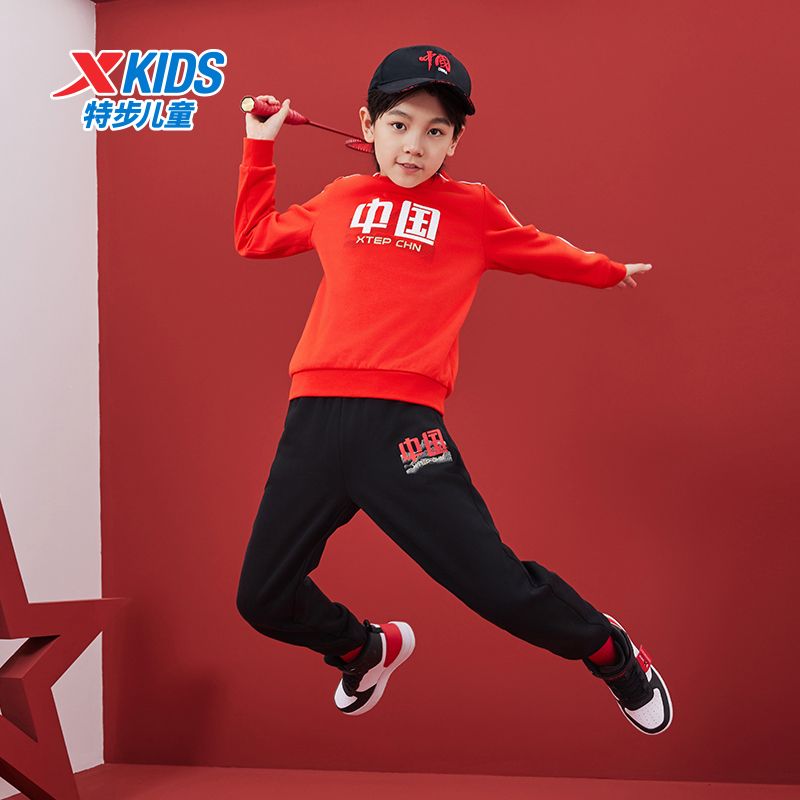 特步童装2024冬季儿童保暖上衣男童加绒大小童卫衣舒适休闲国潮