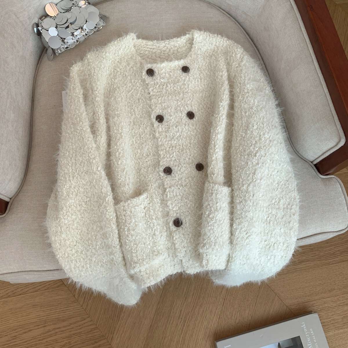 秋冬毛茸茸舒适保暖毛衣外套女新款显瘦双排扣气质小香风开衫