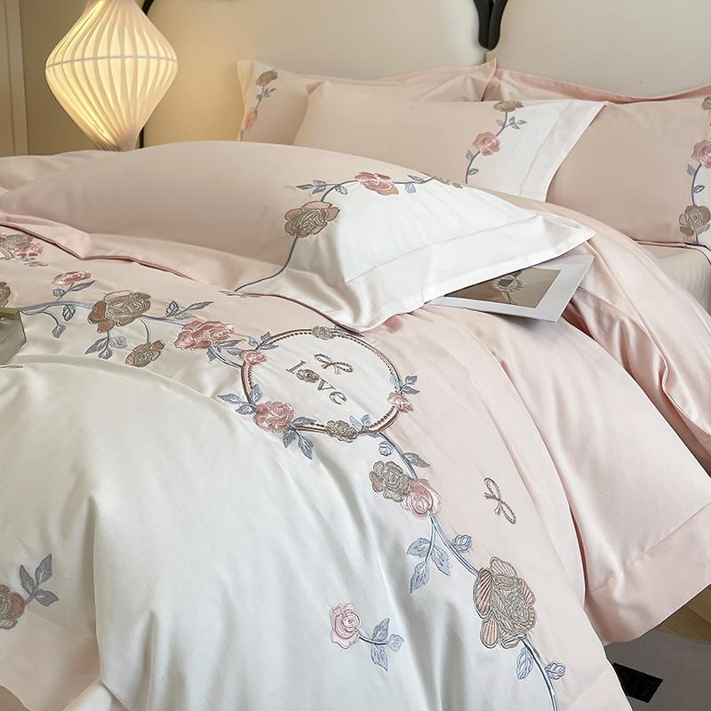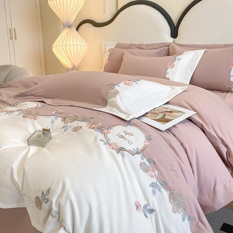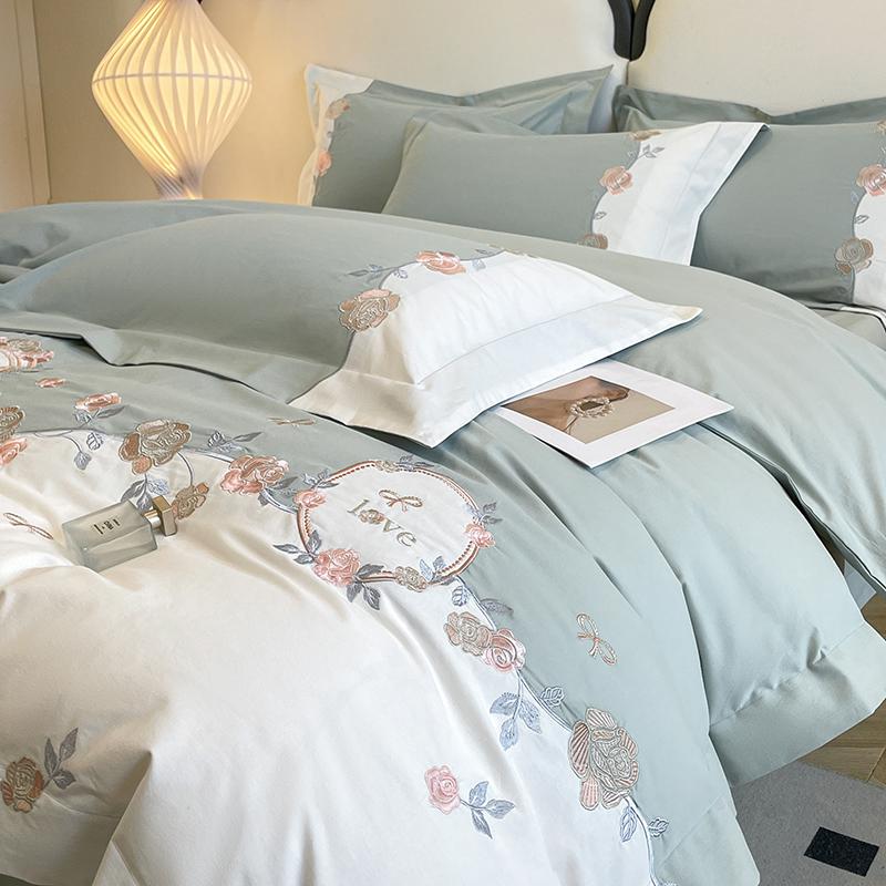 A类轻奢160支长绒棉纯棉四件套全棉刺绣被套床单高级感床上用品4