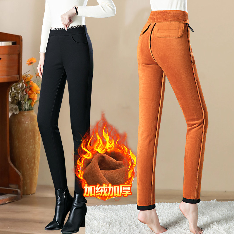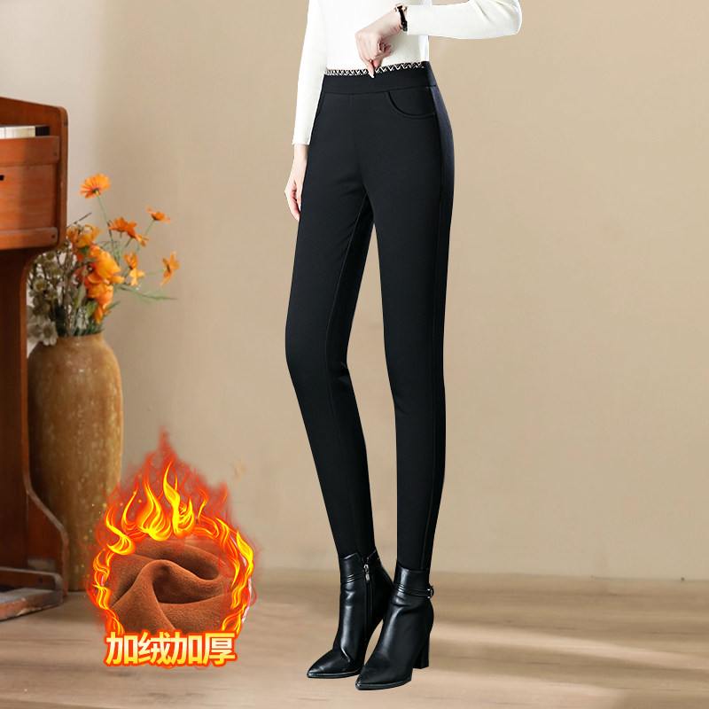 加绒加厚黑色小脚裤子女冬季高腰修身显廋妈妈裤保暖打底裤女外穿