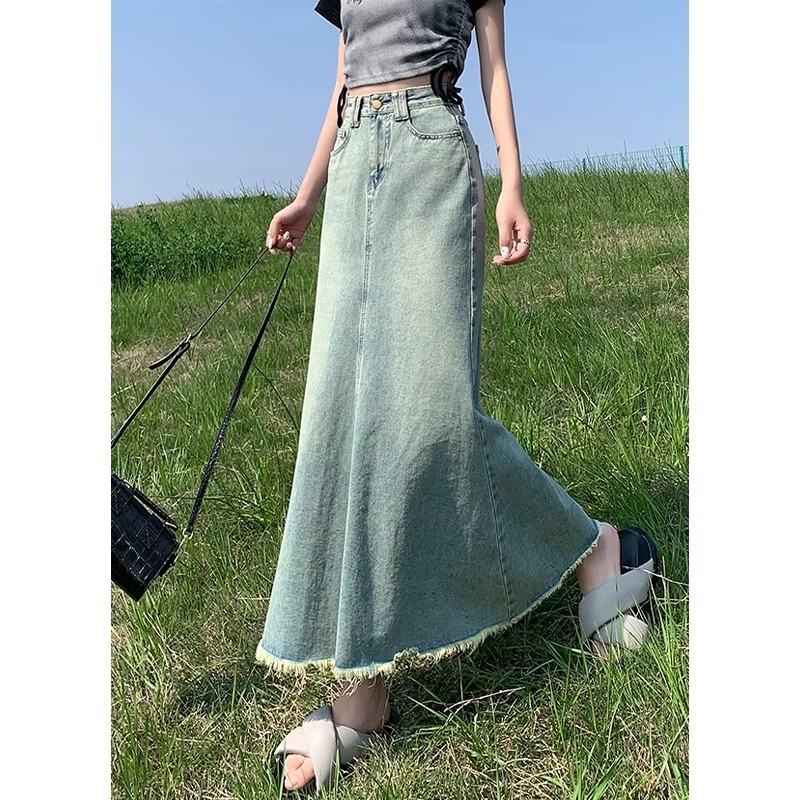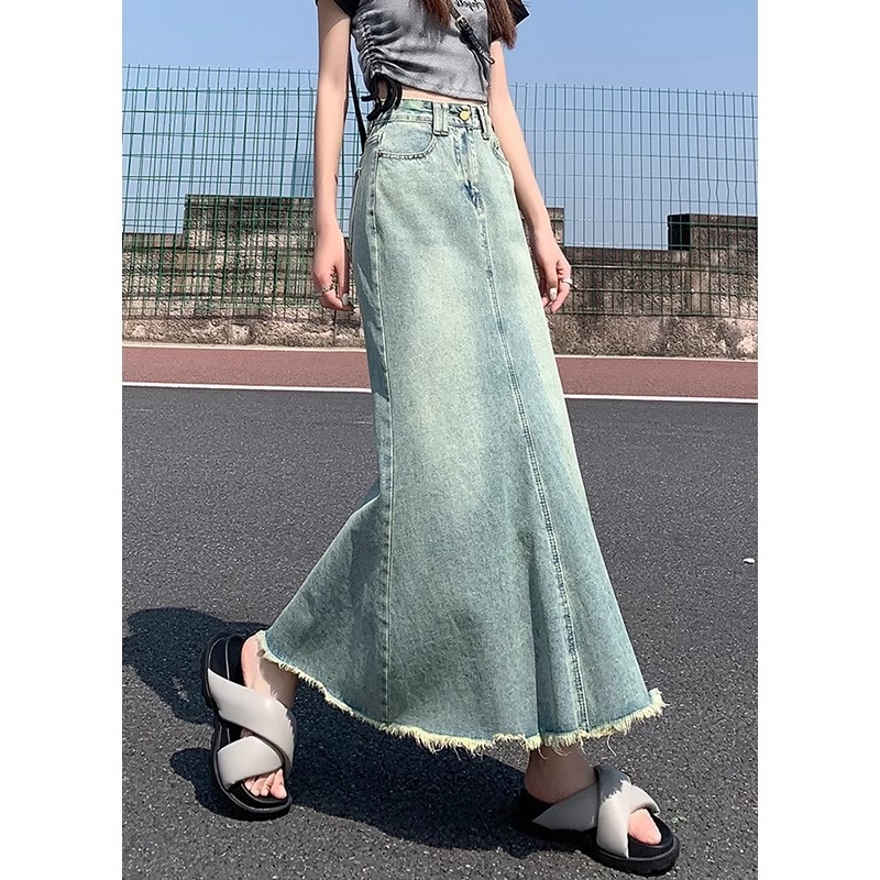 梨型身材美式复古牛仔鱼尾裙半身裙女夏季高腰包臀a字长裙子半裙