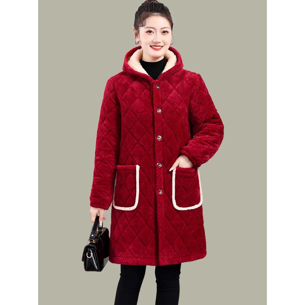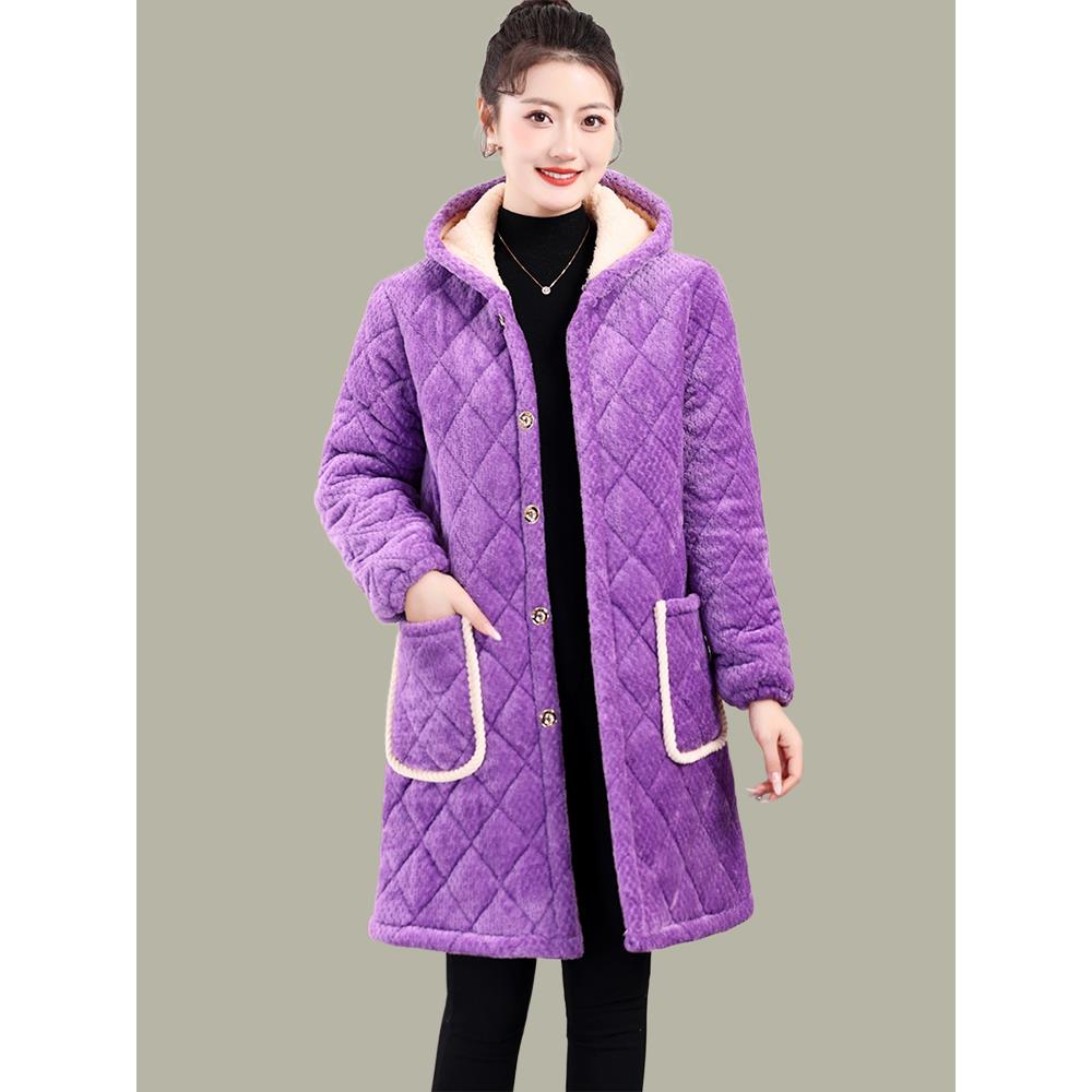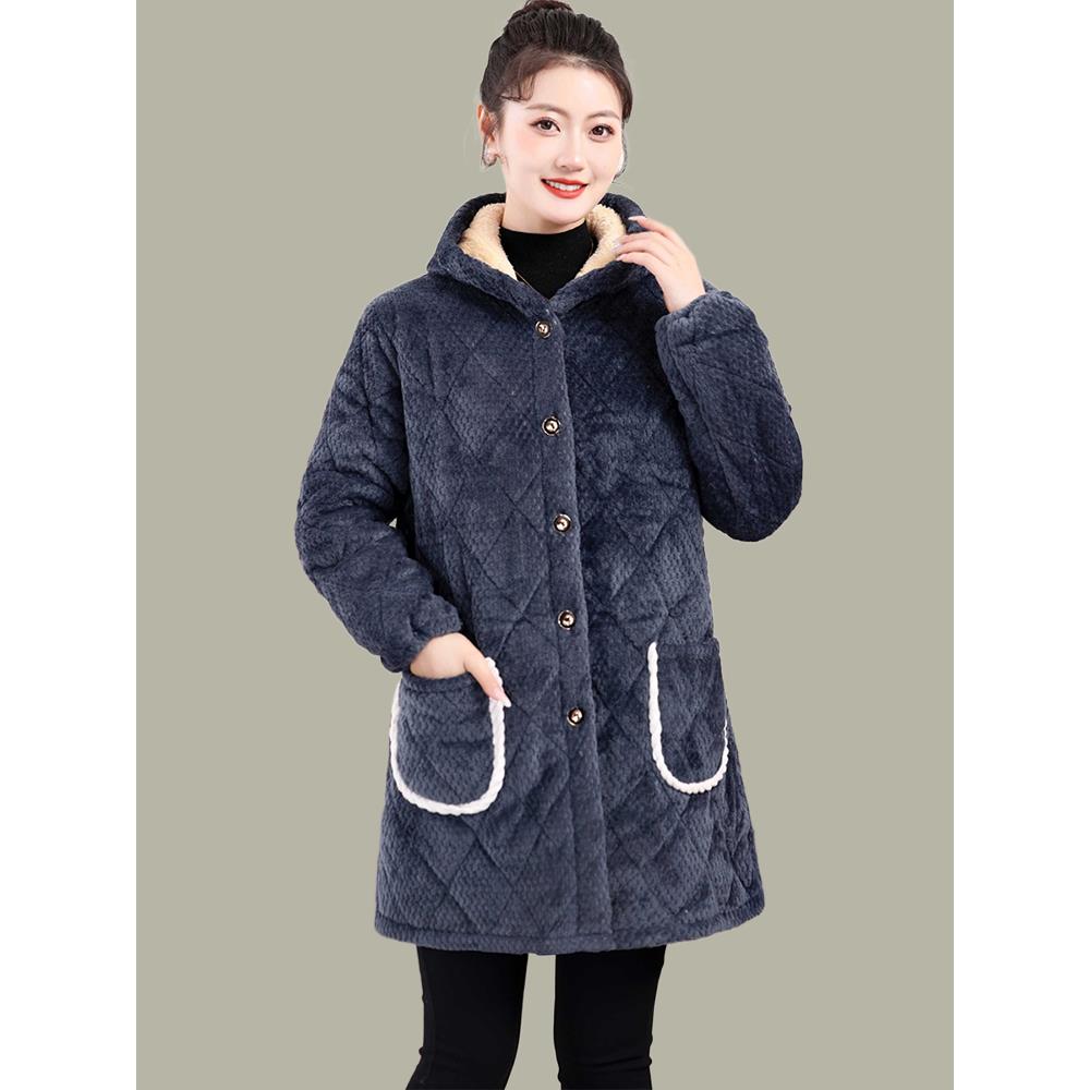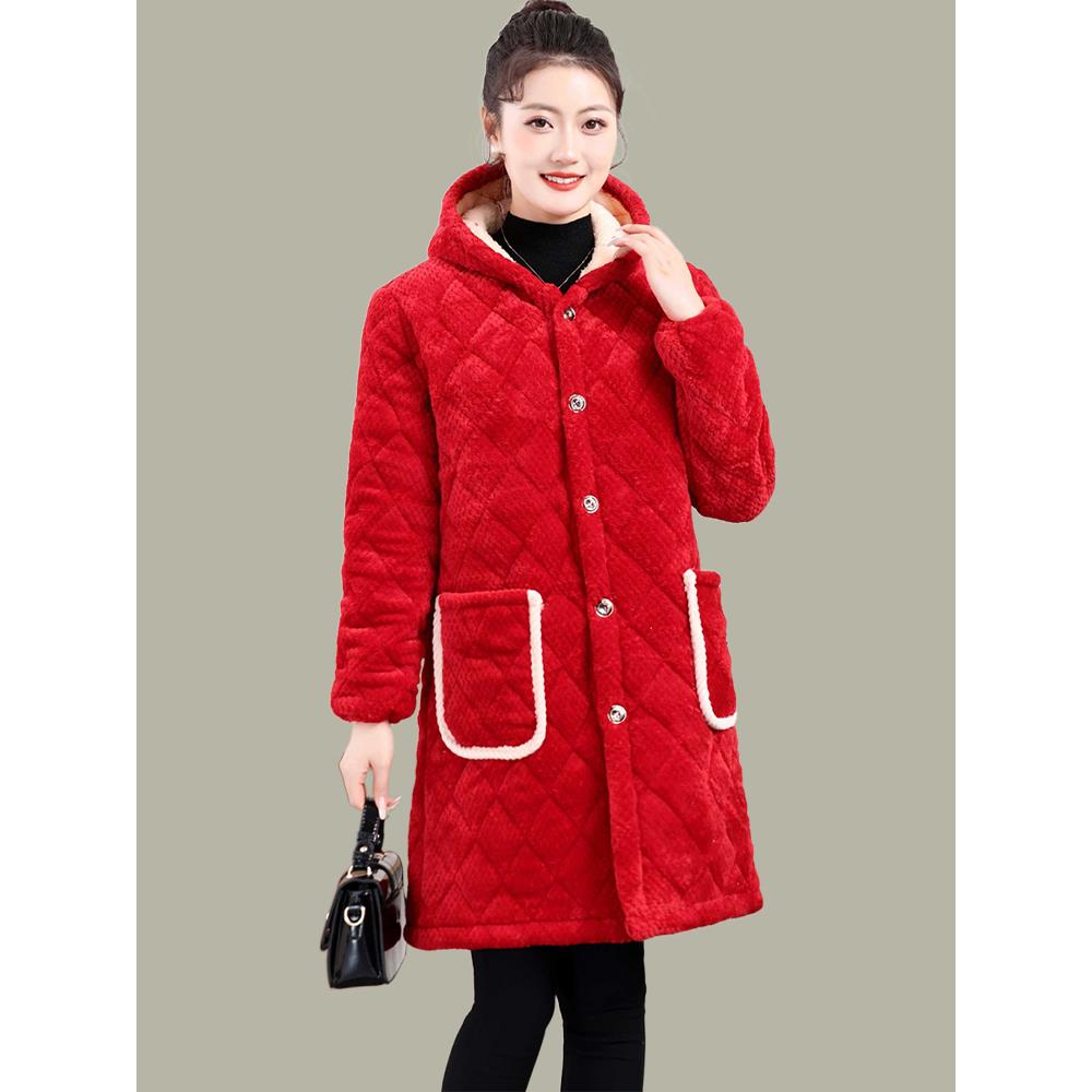 冬季新款加绒罩衣大码棉衣女法兰绒洋气加厚棉服中长款厚棉袄外套