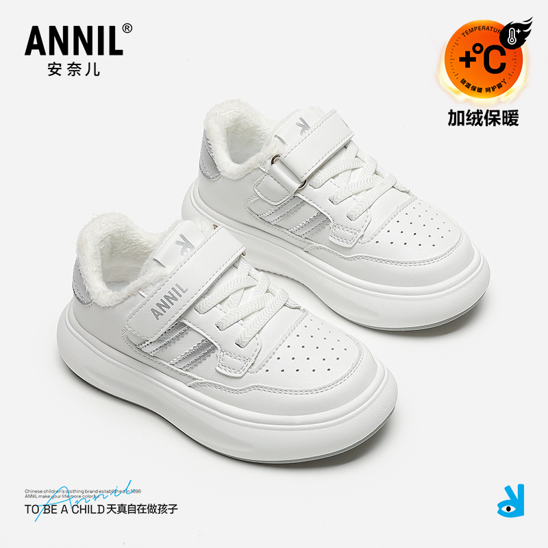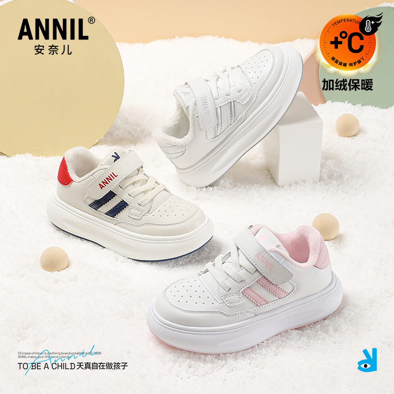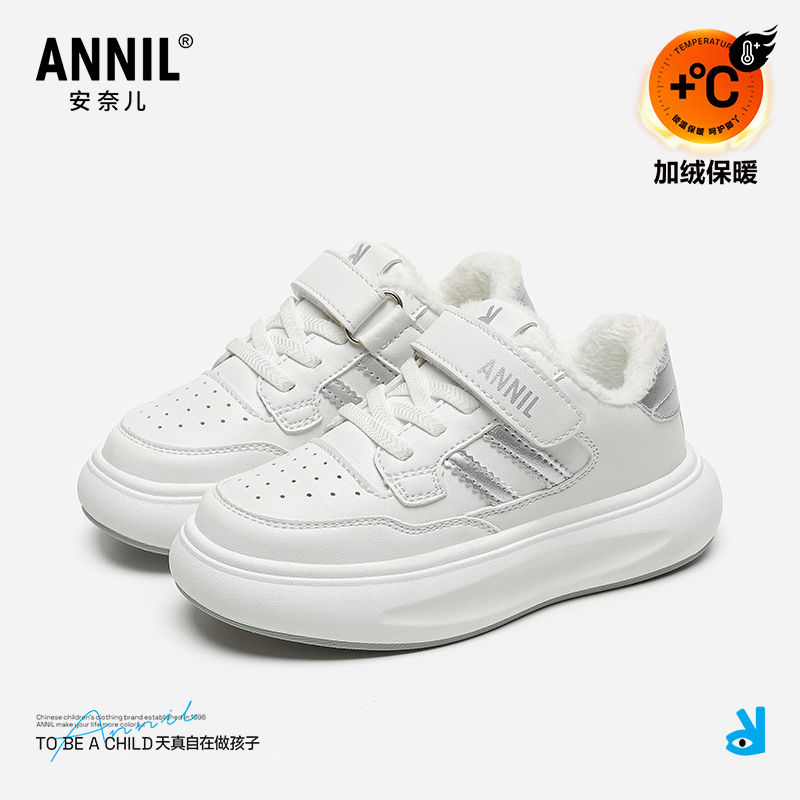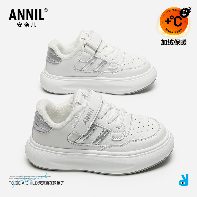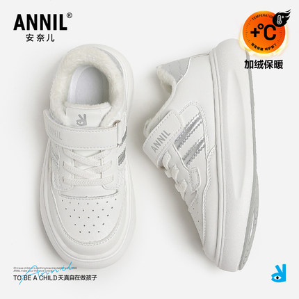 annil安奈儿童鞋男童小白鞋女童加绒保暖二棉鞋冬季儿童运动板鞋