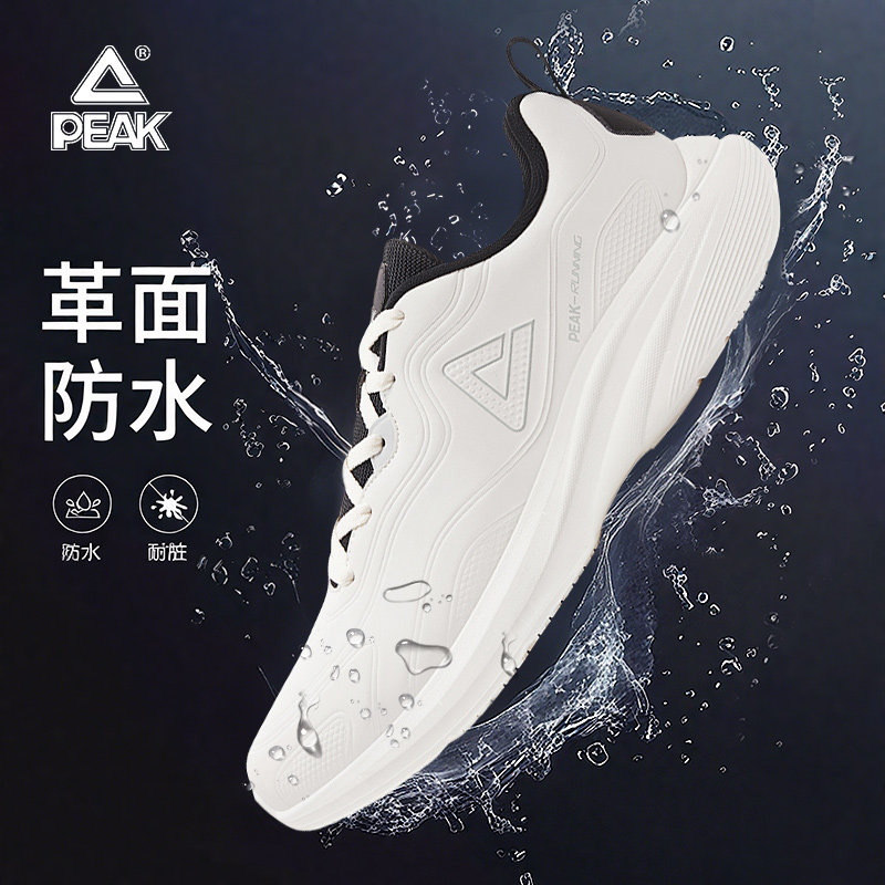 匹克态极男鞋黑色皮面防水运动鞋冬季新款雨天软底休闲跑步鞋子