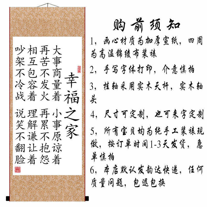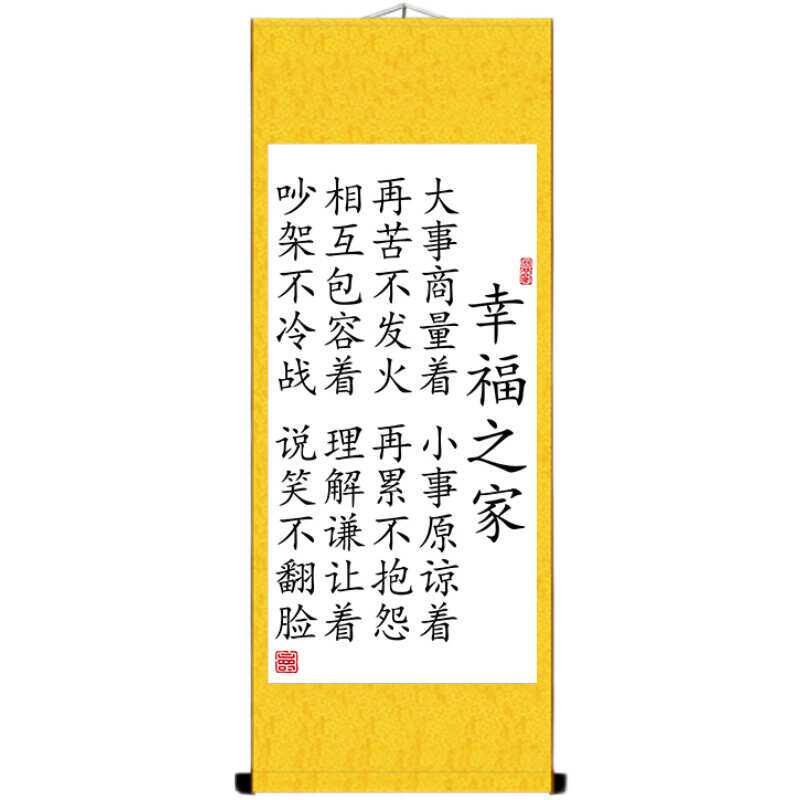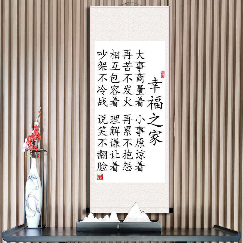 幸福之家和睦家庭习惯励志书法挂画客厅卧室一家人字画装裱卷轴画