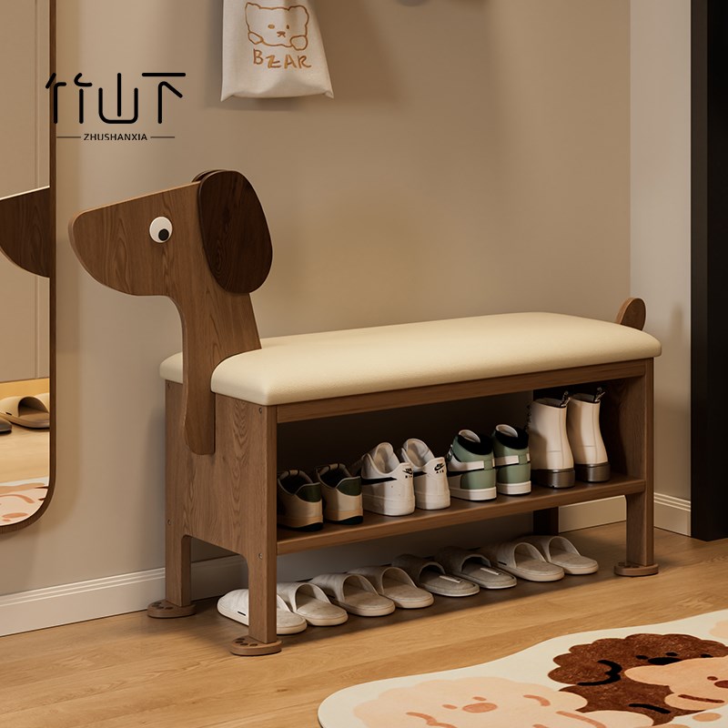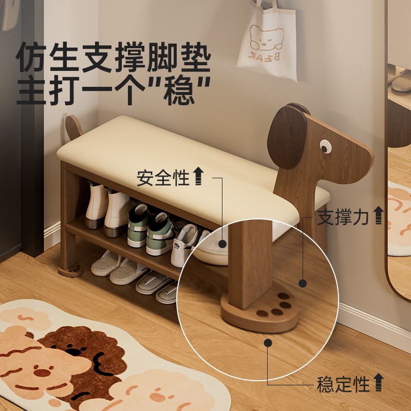 实木小狗换鞋凳门口家用可爱创意入户玄关可坐鞋柜坐凳一体长条凳