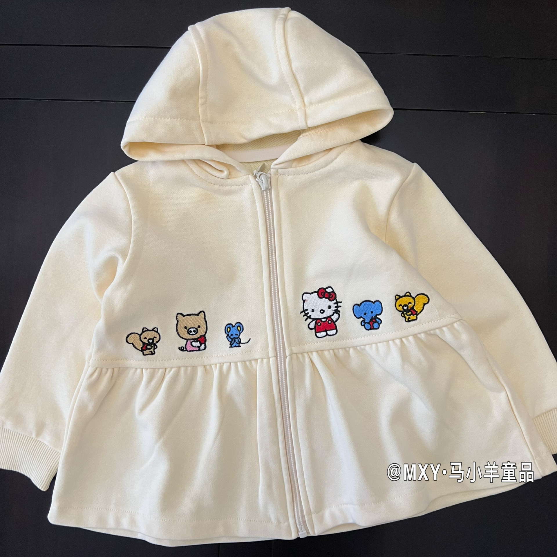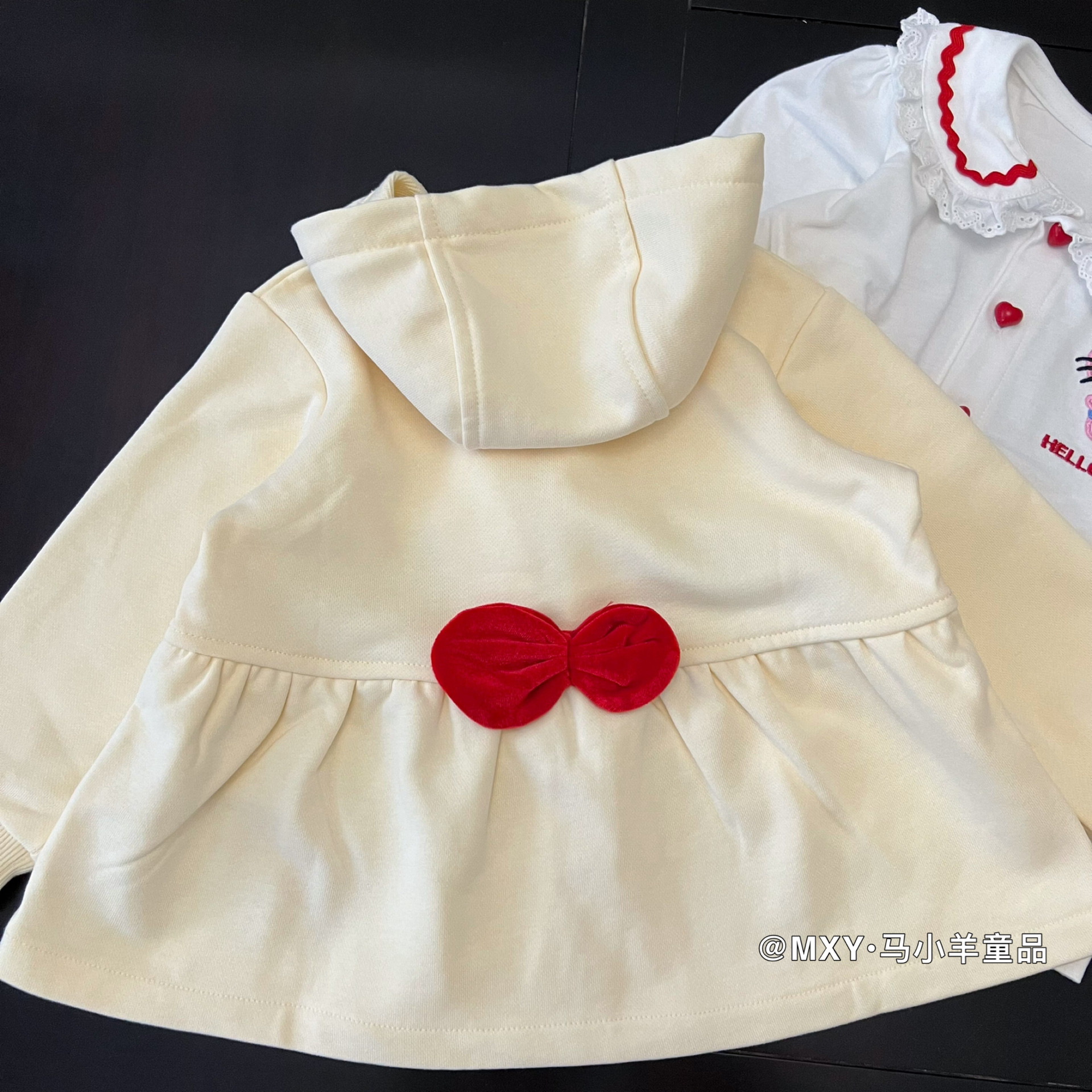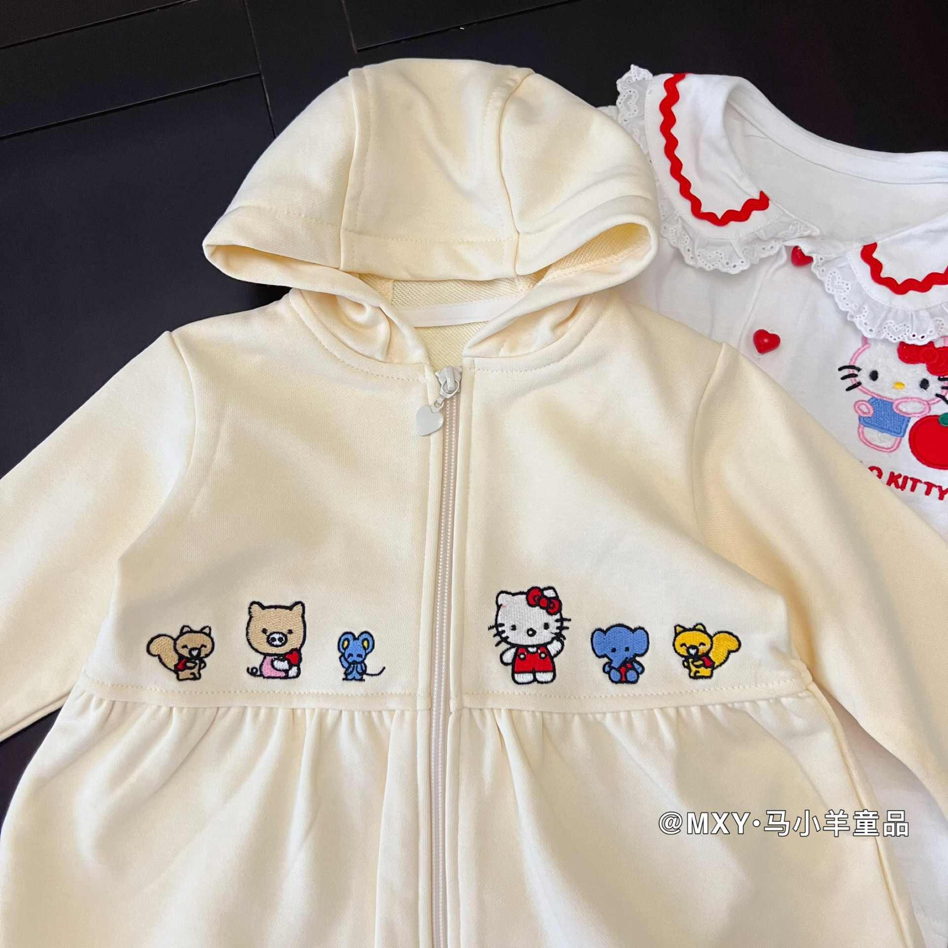 女包猫咪裙摆连帽针织外套 女童25春款可爱连帽衫纯棉毛圈卫衣潮