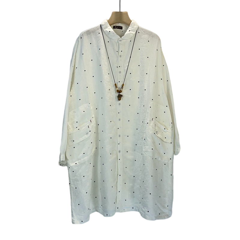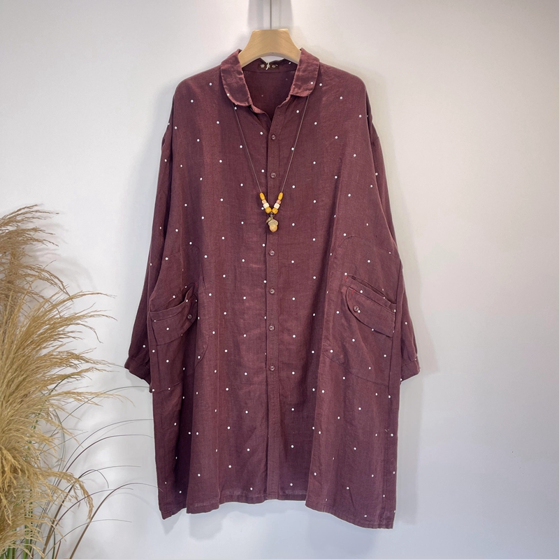 2025春季新款复古文艺宽松大码胖mm中长款波点印花衬衫外套女