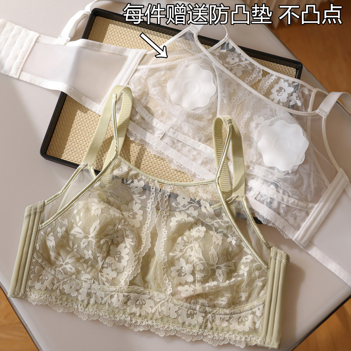 性感超薄款内衣女夏季大胸显小显瘦束胸全罩杯法式蕾丝大码文胸罩